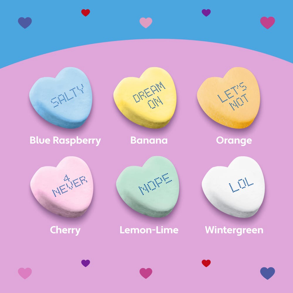 Make sweet memories this Valentine's Day with these Brach's Wisecracks Conversation Hearts. These heart-shaped candies have a satisfying crunch and include a mix of six tasty flavors like Blue Raspber…