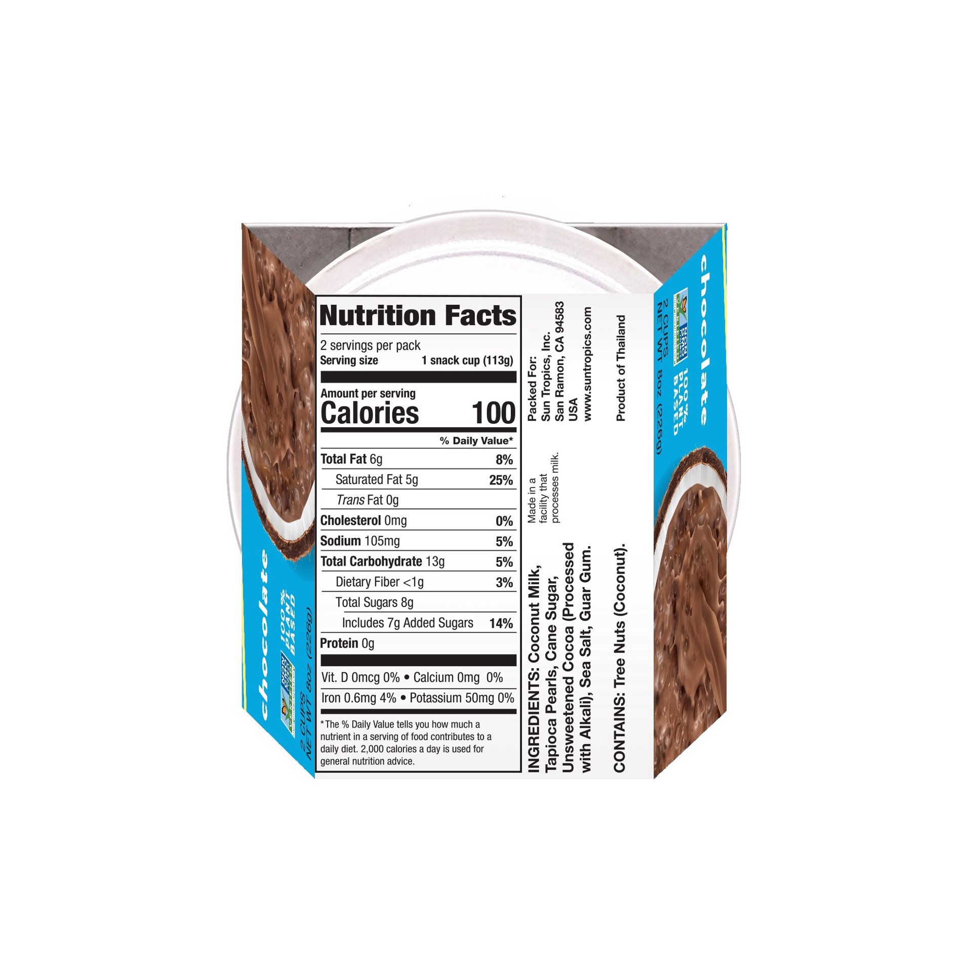Coconut Milk, Tapioca Pearls, Cane Sugar, Unsweetened Cocoa (Processed with Alkali), Sea Salt, Guar Gum.