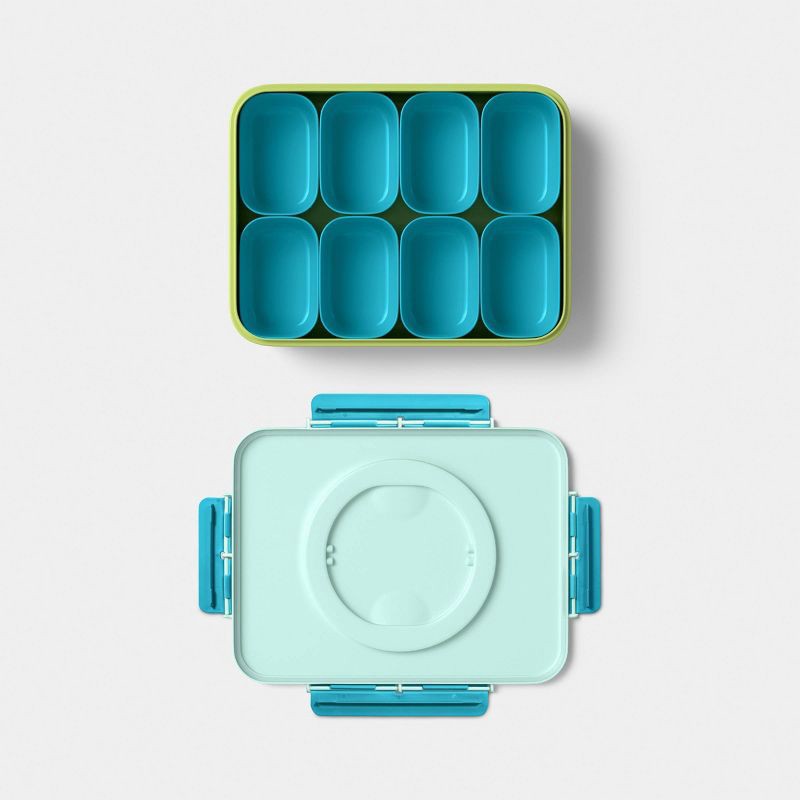 - Features multiple removable, divided compartments plus snap-on lid