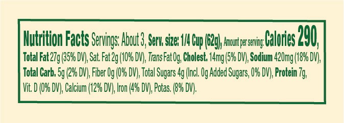 BASIL, EXTRA VIRGIN OLIVE OIL, CANOLA OIL, PARMESAN CHEESE (CULTURED PART-SKIM MILK, SALT, ENZYMES), ROMANO CHEESE (CULTURED PART-SKIM COW''S MILK, SALT, ENZYMES), REDUCED LACTOSE WHEY, WATER, WHEY PR…