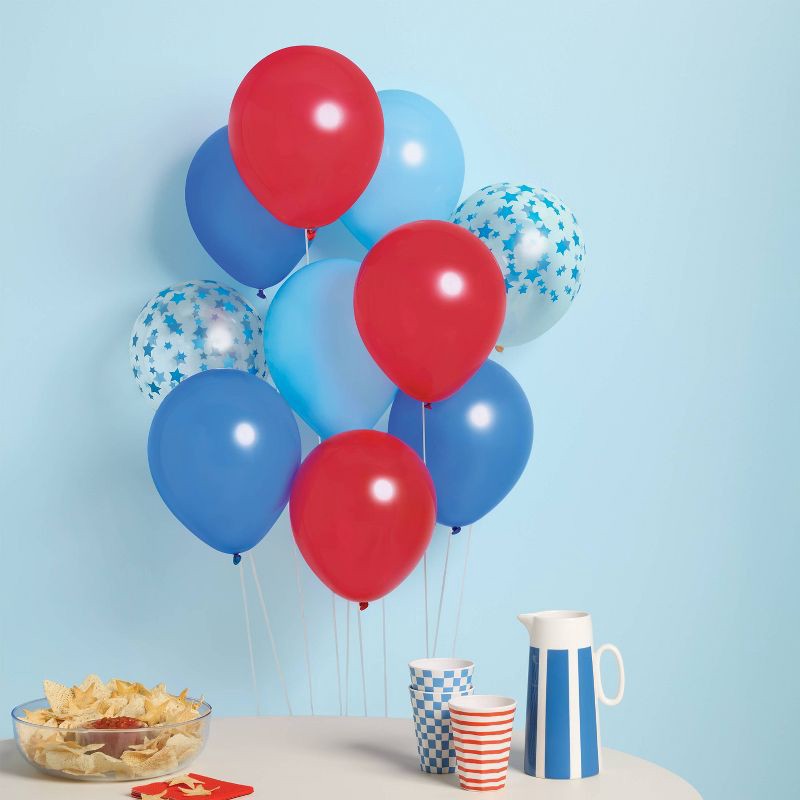 This 15ct 4th of July USA Red/Blue Star Mix Latex Balloon Pack from Spritz™ makes decorating for Independence Day easy and fun. Featuring a mix of red and blue star-shaped balloons, it adds instant pa…