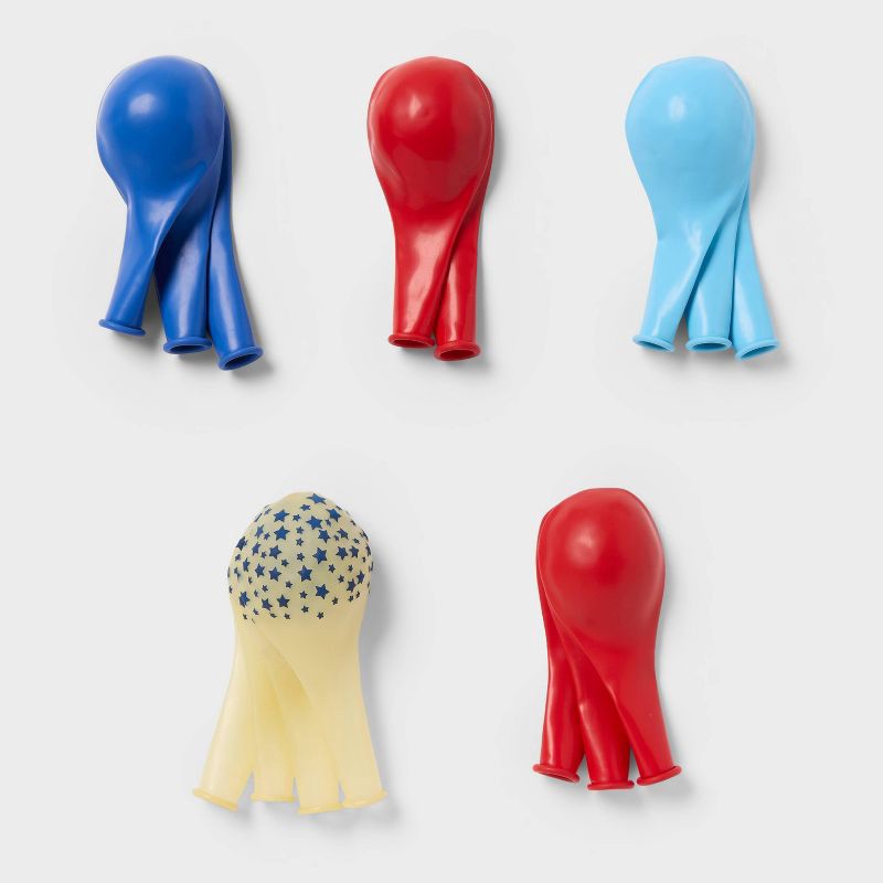 - 15-count latex balloon pack designed for 4th of July celebrations
