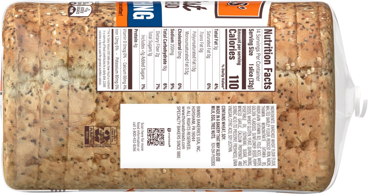 Enriched Wheat Flour [Flour, Malted Barley Flour, Reduced Iron, Niacin, Thiamin Mononitrate (Vitamin B1), Riboflavin (Vitamin B2), Folic Acid], Water, Golden Flaxseed, Sunflower Seeds, Poppy Seeds, Wh…