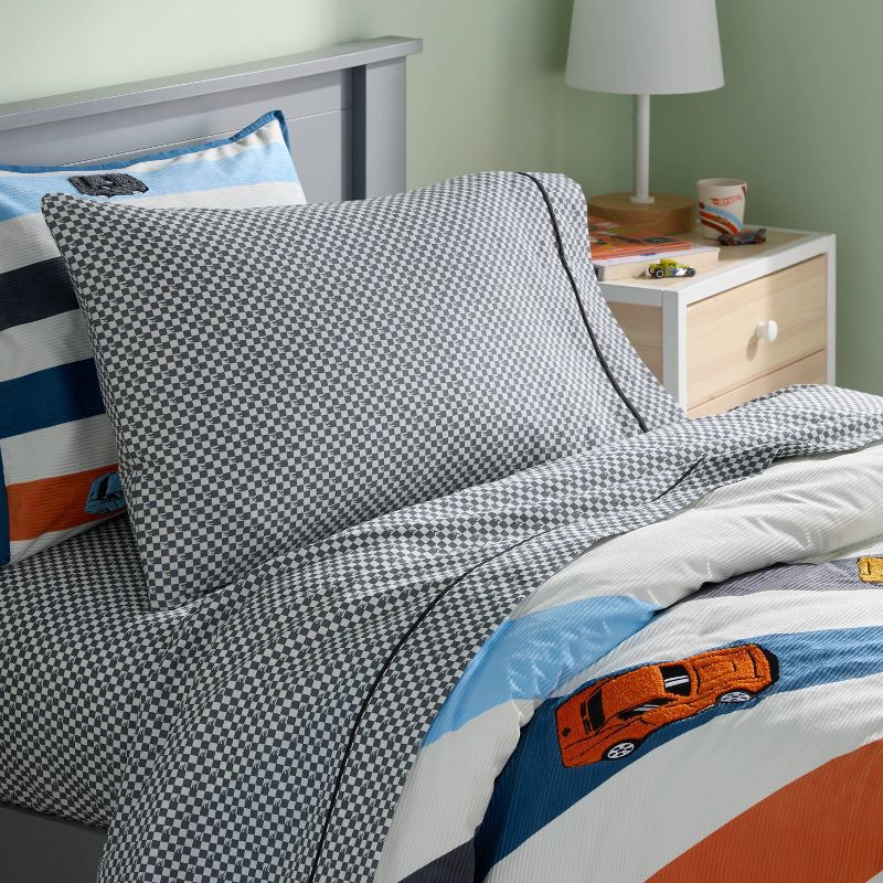 Transform your child's bed into a cool racetrack with this Hot Wheels Retro Checkered Flame Cotton Sheet Set from Hot Wheels by Pillowfort™. This three-piece sheet set features an allover retro-style …