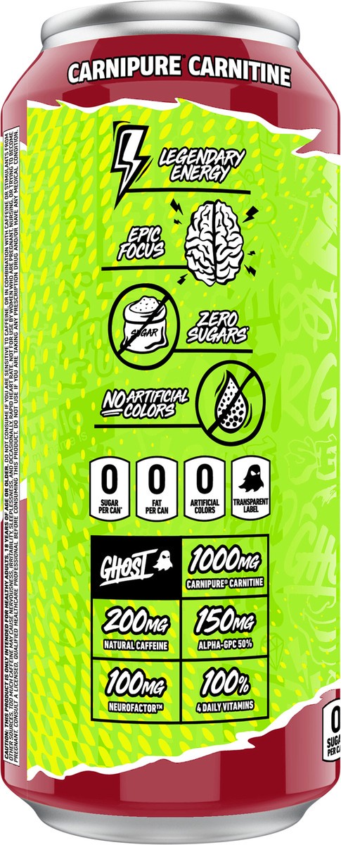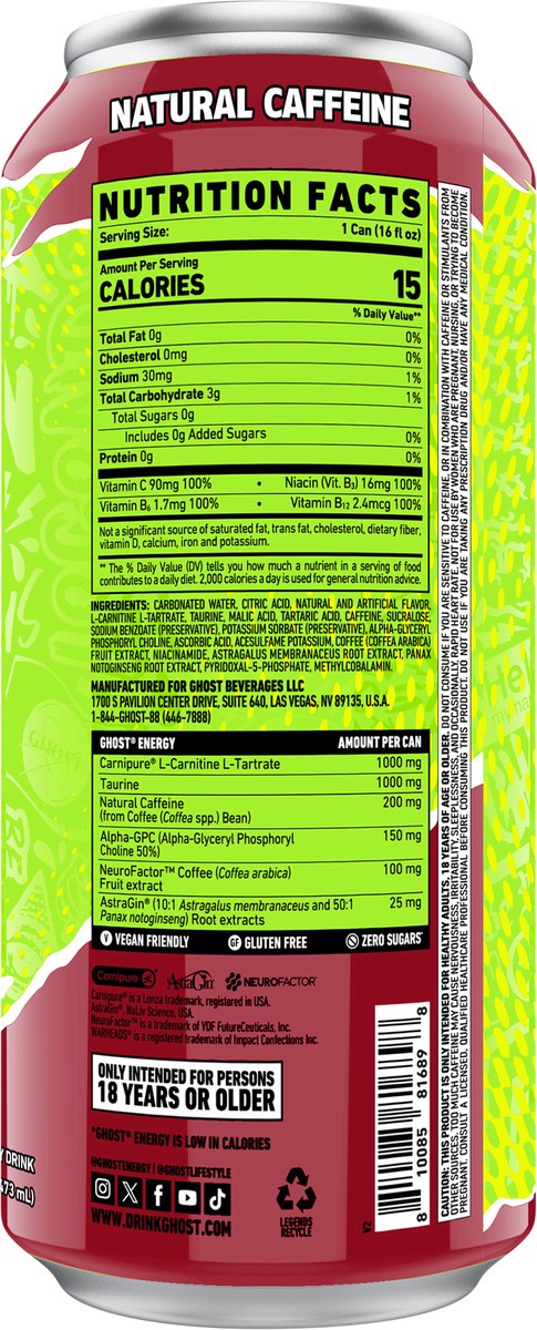 - TOTAL TRANSPARENCY: All Ghost products feature a transparent label that fully discloses the dose of each active ingredient. Zero proprietary blends means you know what you’re getting in each and every sip. Ghost Energy contains zero-sugars and is vegan-friendly and gluten-free.