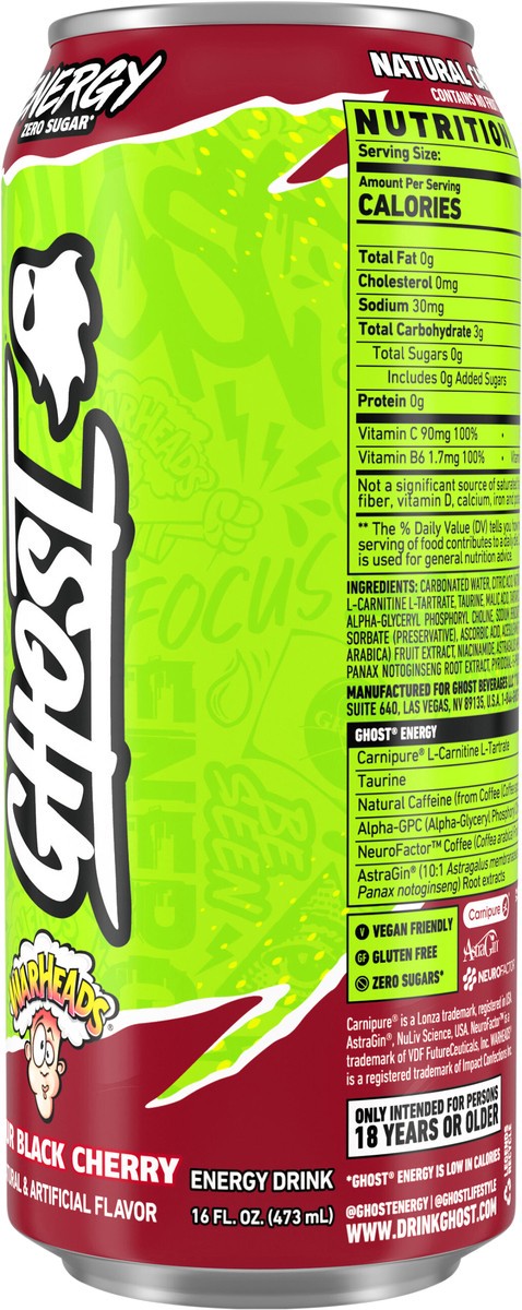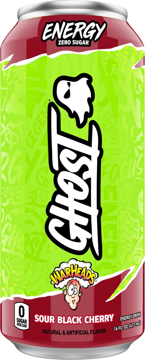 Ghost Zero Sugar Energy Drink, Warheads Sour Black Cherry, 16 fl oz can