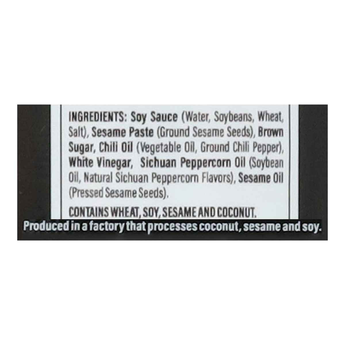 Soy Sauce (Water, Soybeans, Wheat, Salt), Sesame Paste (Ground Sesame Seeds), Brown Sugar, Chili Oil (Vegetable Oil, Ground Chili Pepper), White Vinegar, Sichuan Peppercorn Oil (Soybean Oil, Natural S…