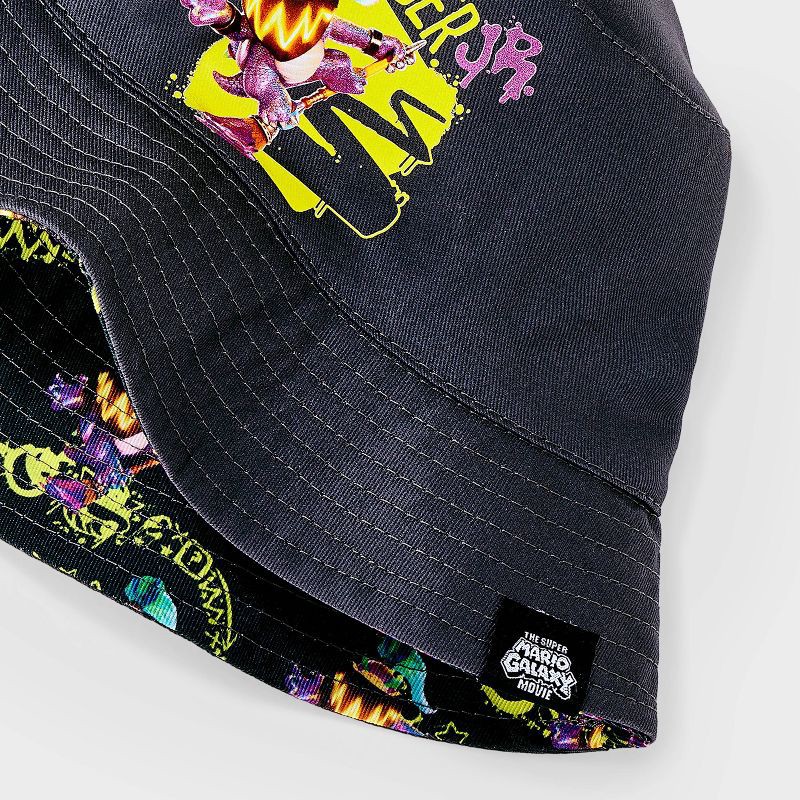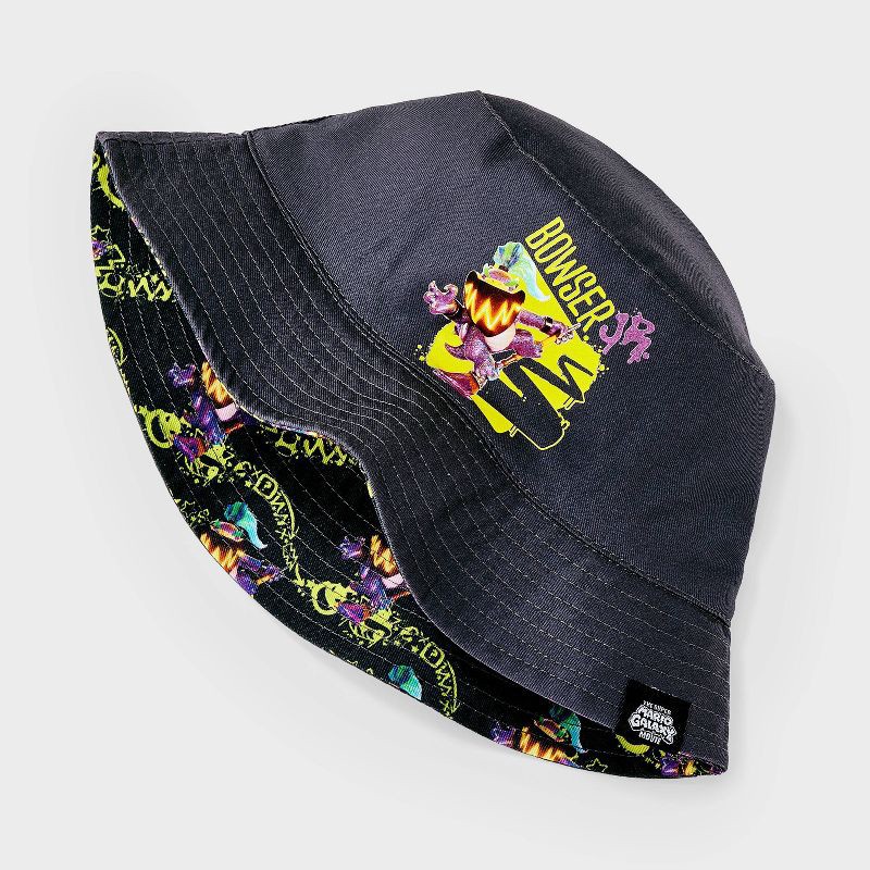 Add fun Nintendo vibes to their sunny days with this Bowser Jr. Reversible Bucket Hat. This versatile hat features a dark gray upper showcasing a vibrant Bowser Jr. motif on the front, while the rever…