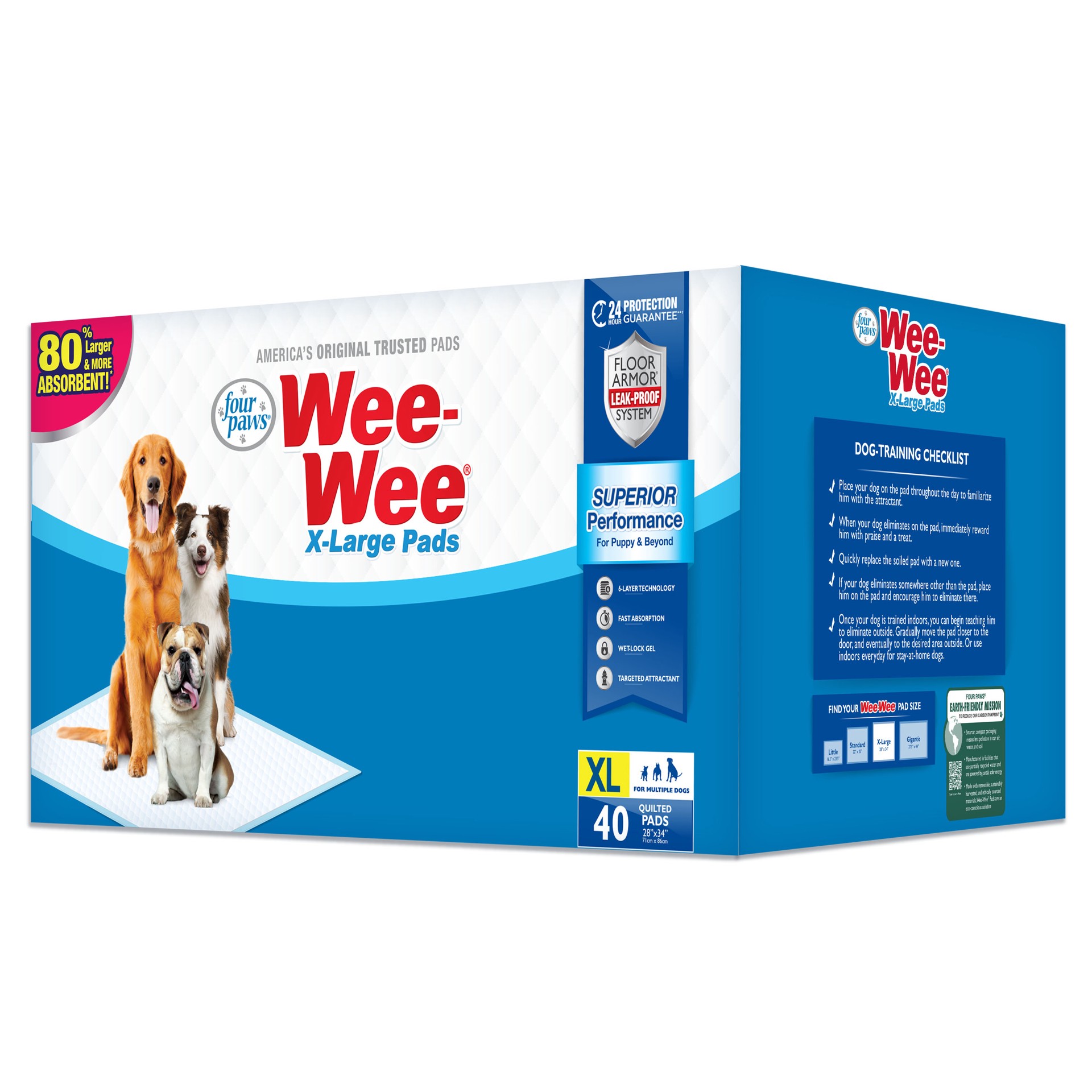 - Extra-large dog pee pads are 80% larger and more absorbent than original 5-layer Wee-Wee Pads