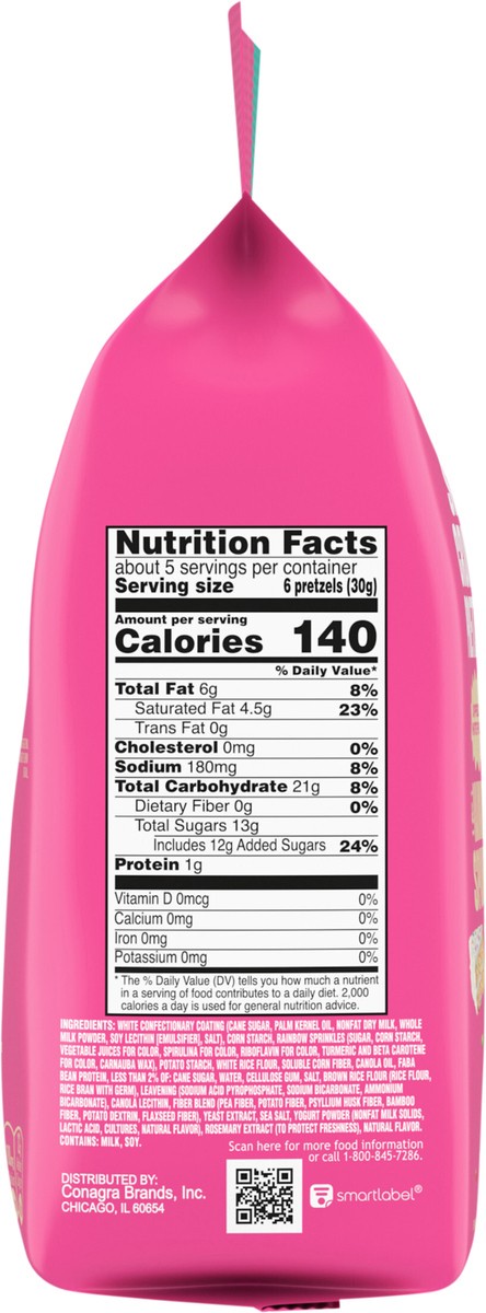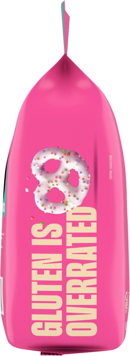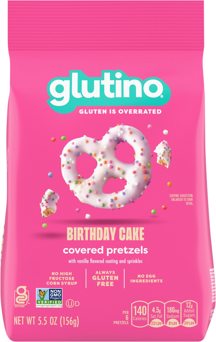 - Enjoy toasty pretzel twists covered in a yummy yogurt coating and topped with colorful sprinkles that have the birthday cake flavor you love without the gluten