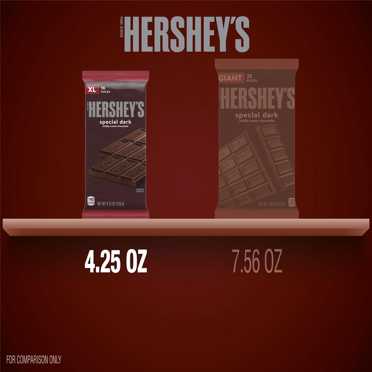 - Contains one (1) 4.25-ounce XL HERSHEY''S SPECIAL DARK Mildly Sweet Chocolate Bar