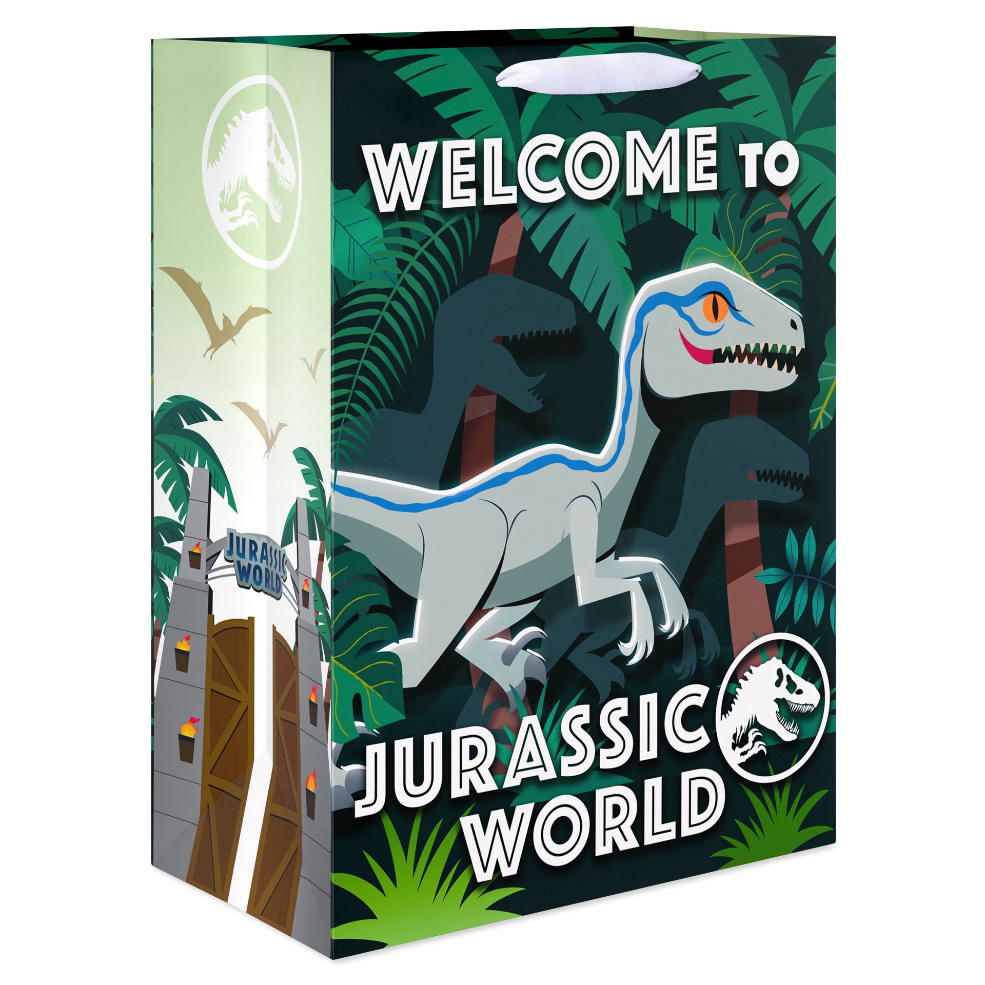 Delight any Jurassic World fan with this jumbo-sized gift bag that brings the excitement of the lush Isla Nublar right to your gift-giving. This vividly detailed bag captures the essence of adventure …