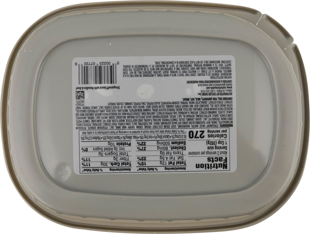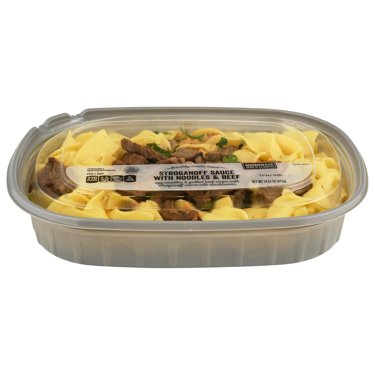 Stroganoff Sauce (Water, Mushrooms, Sour Cream [Cultured Cream], Cream, Sherry Wine [Wine, Salt, Potassium Sorbate, Potassium Metabisulfite], Onion, Beef Seasoning Blend [Dried Soy Sauce (Soybeans, Wh…