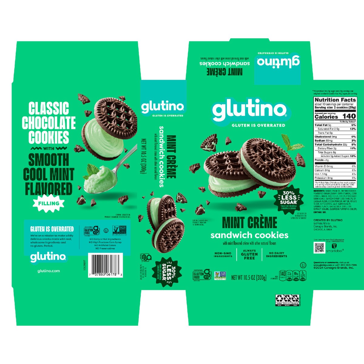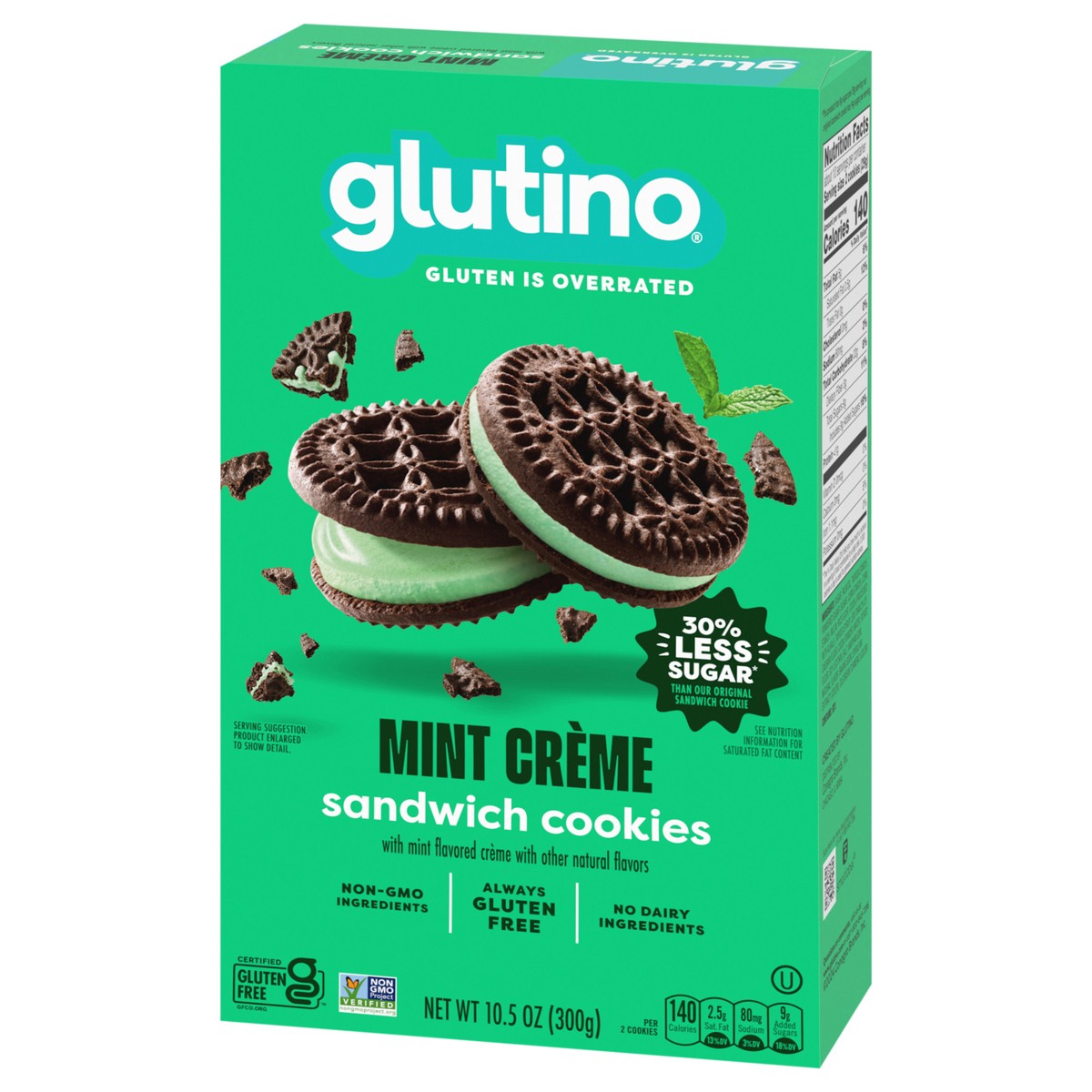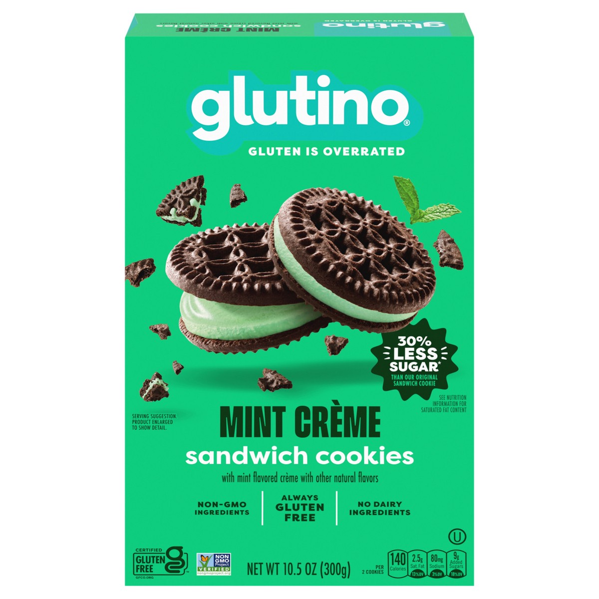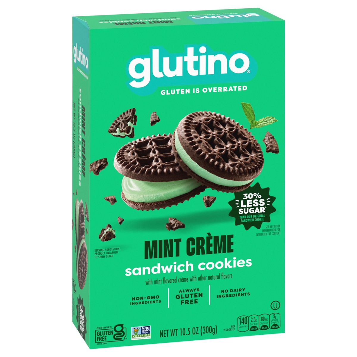 - One 10.5 oz. box of Glutino Gluten Free Mint Flavored Sandwich Cookies