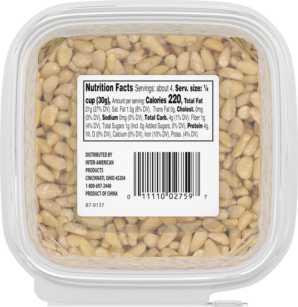 PINE NUTS.PROCESSED ON EQUIPMENT THAT ALSO PROCESSES PEANUTS AND OTHER TREE NUTS.For Clamshell Only:PROCESSED ON EQUIPMENT THAT ALSO PROCESSES PEANUTS, OTHER TREE NUTS, MILK, SOY, WHEAT.