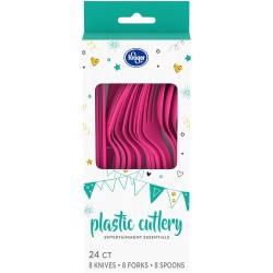 Set your table with lively color using our Pink Plastic Cutlery Set. This 24-piece set of plastic utensils includes 8 forks, 8 spoons, and 8 knives, so you can serve 8 guests at your birthday party, b…