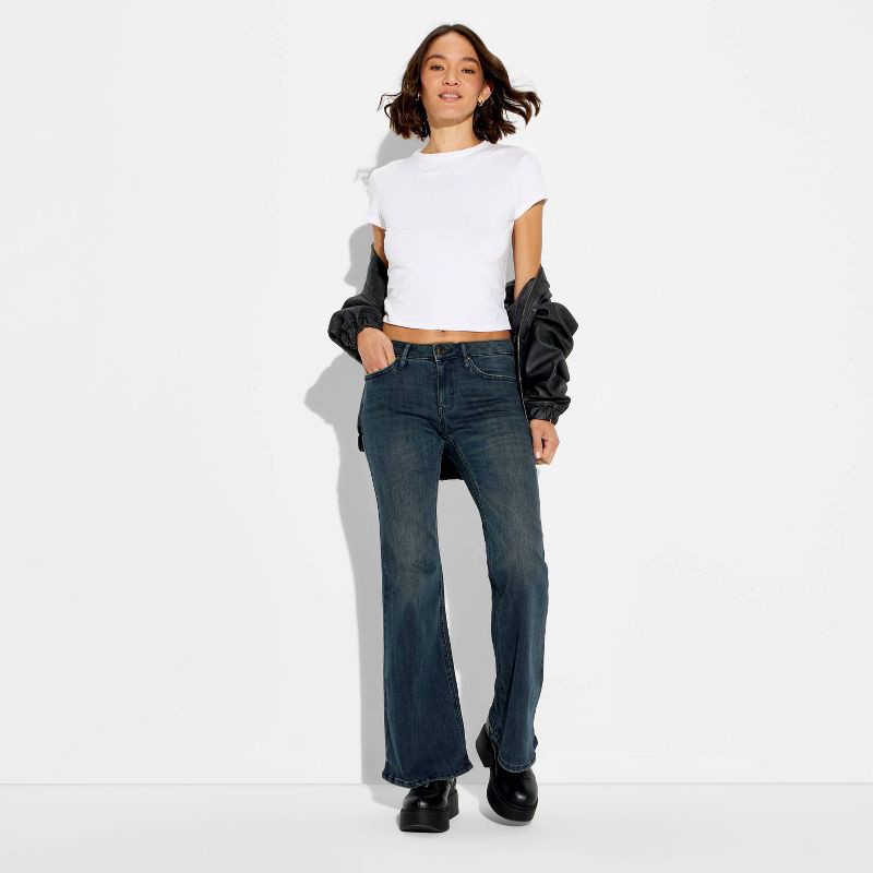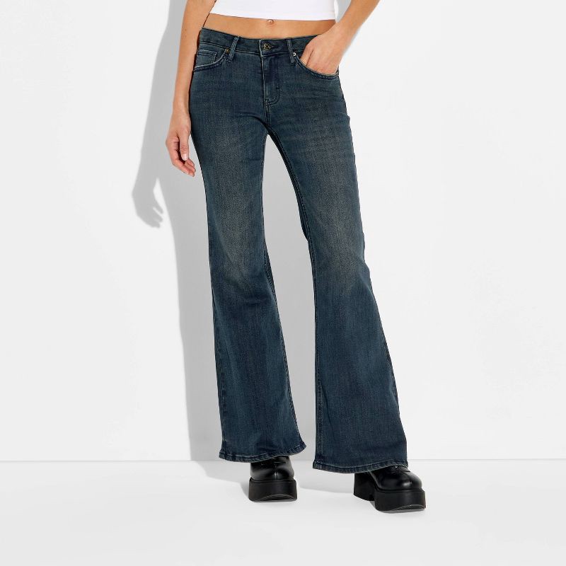 Mid-rise flare jeans from Wild Fable™. Crafted from midweight denim fabric blend of cotton, recycled polyester, recycled cotton and spandex for flexible comfort. Tailored in a flared-leg silhouette wi…