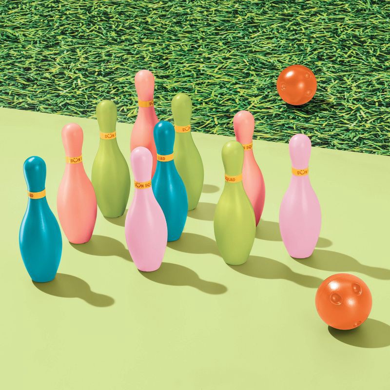 - Includes easy-to-grip bowling pins and ball