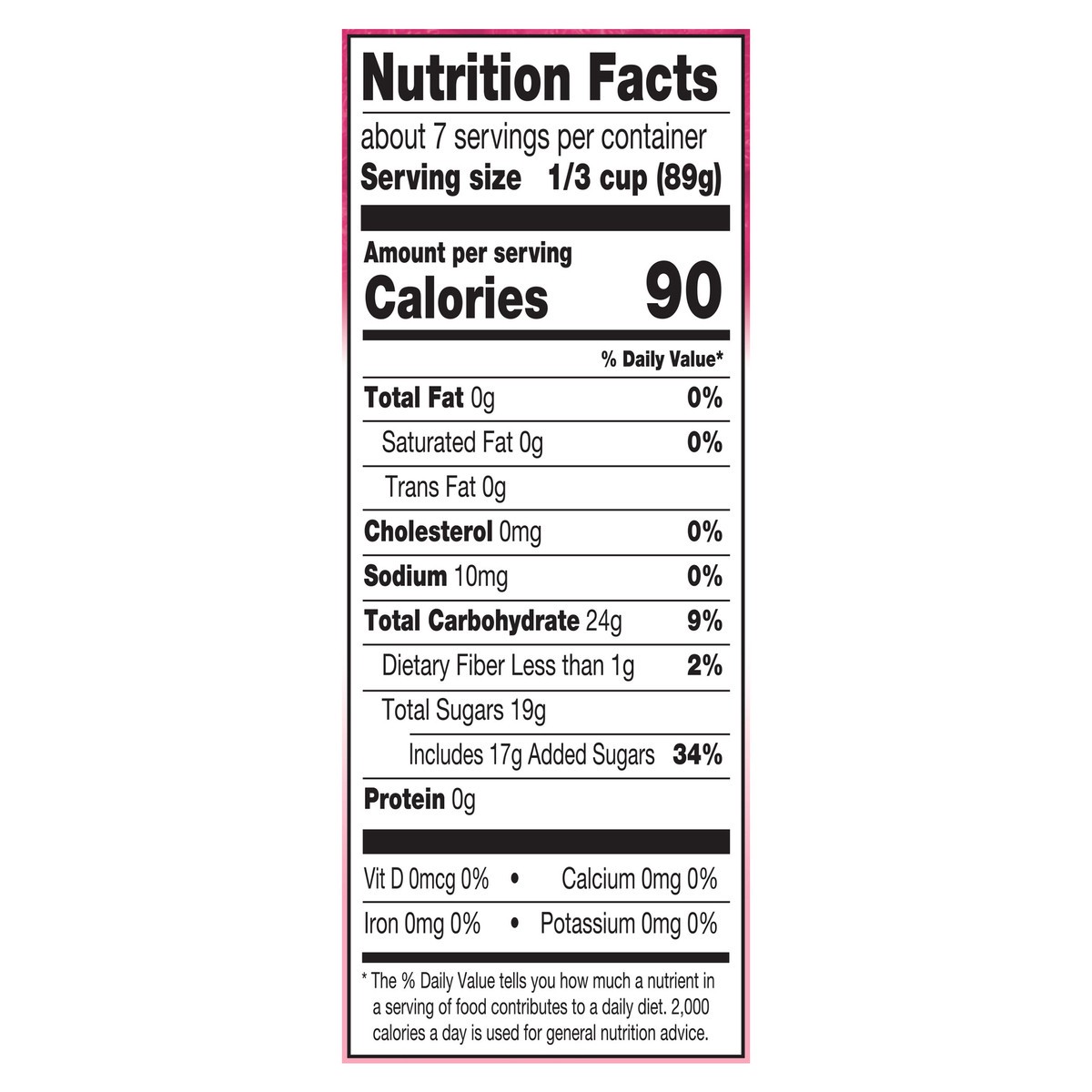 Strawberries, Water, Sugar, Modified Food Starch, Citric Acid, Red 40.
