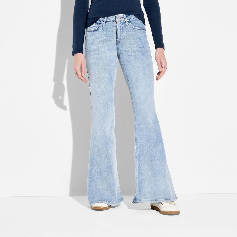 Mid-rise flare jeans from Wild Fable™. Crafted from midweight denim fabric blend of cotton, recycled polyester, recycled cotton and spandex for flexible comfort. Tailored in a flared-leg silhouette wi…
