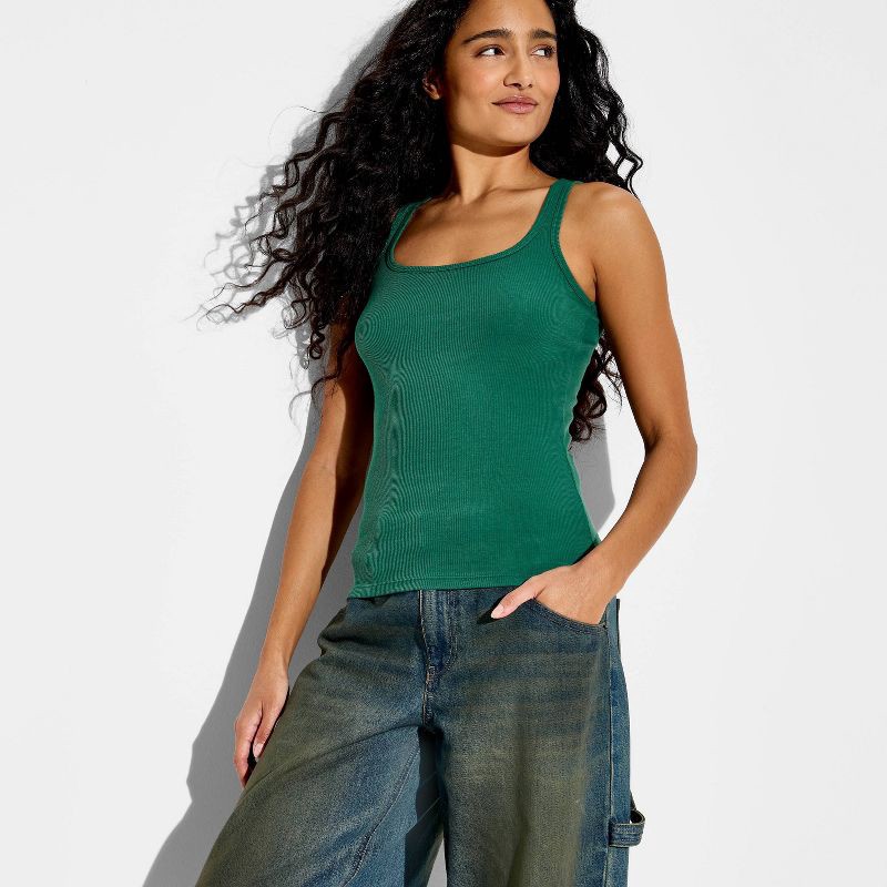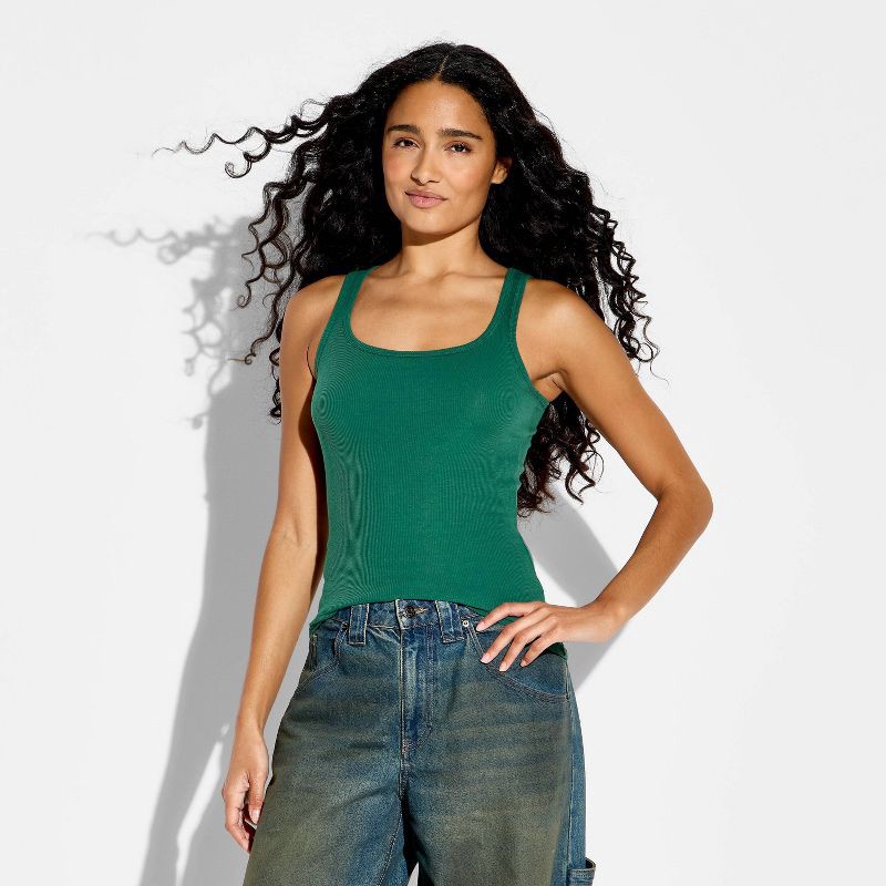 Women's Core Ribbed Tank Top - Wild Fable™ Dark Green XL