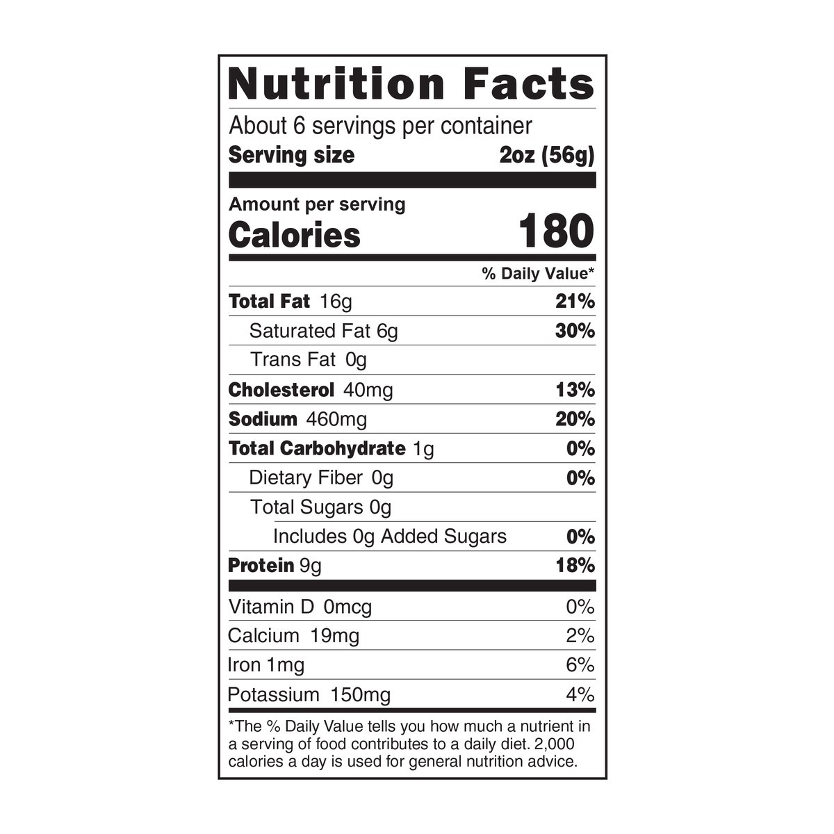 Pork, Water, Salt, Chili Powder, Vinegar, Spices, Sodium Nitrite, Garlic.