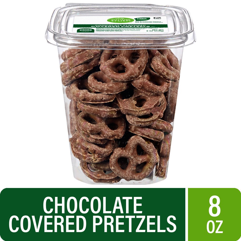Simple Truth® Chocolate Flavored Covered Pretzels offer a delightful crunch with a rich, sweet coating. Made with a smooth chocolate flavored confectionery and classic pretzels, it's a snack combinati…