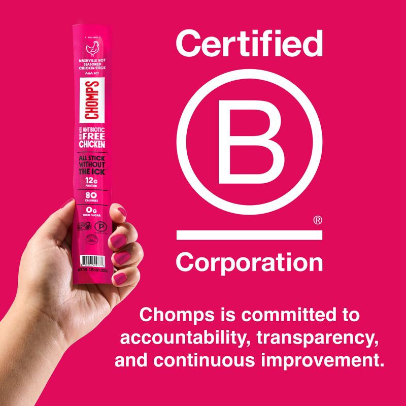 - As a Certified B Corp Chomps is committed to accountability, transparency, and continuous improvement