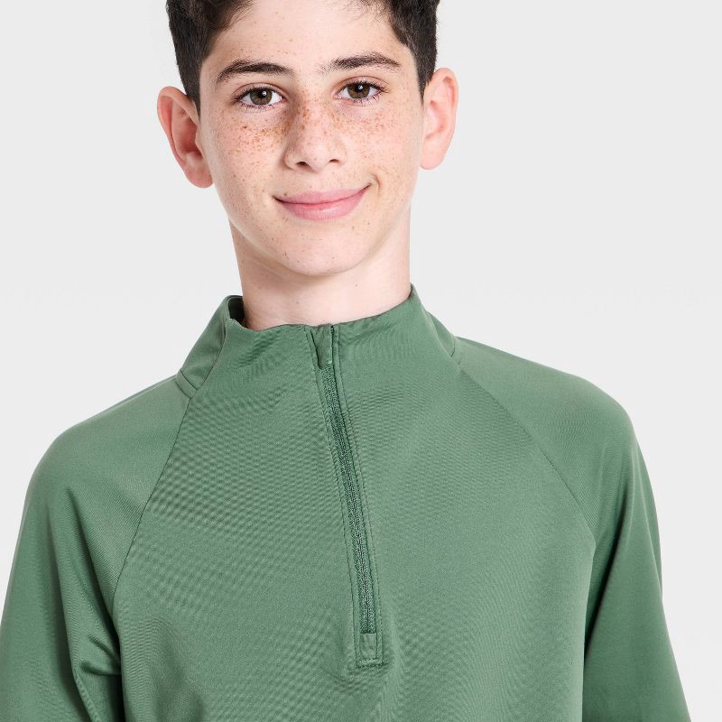 Boys' Soft Stretch 1/4 Zip Pullover - All In Motion™ Green L
