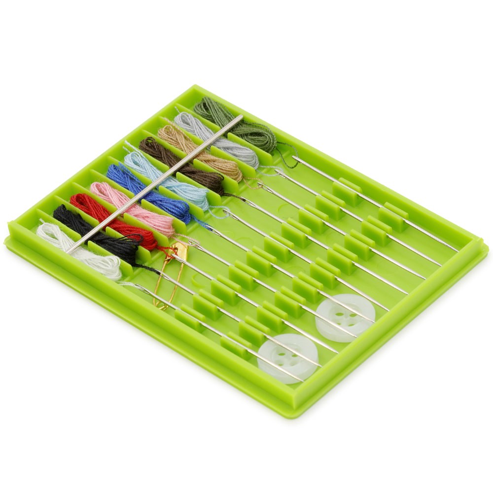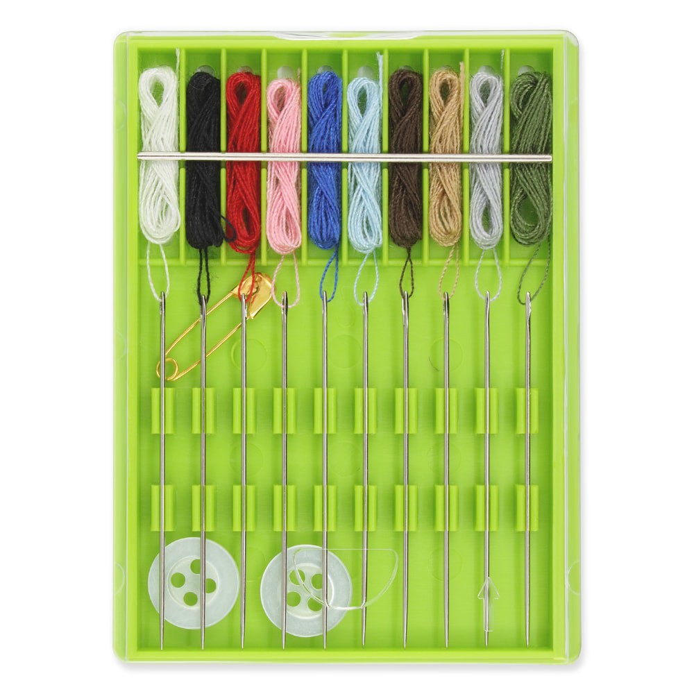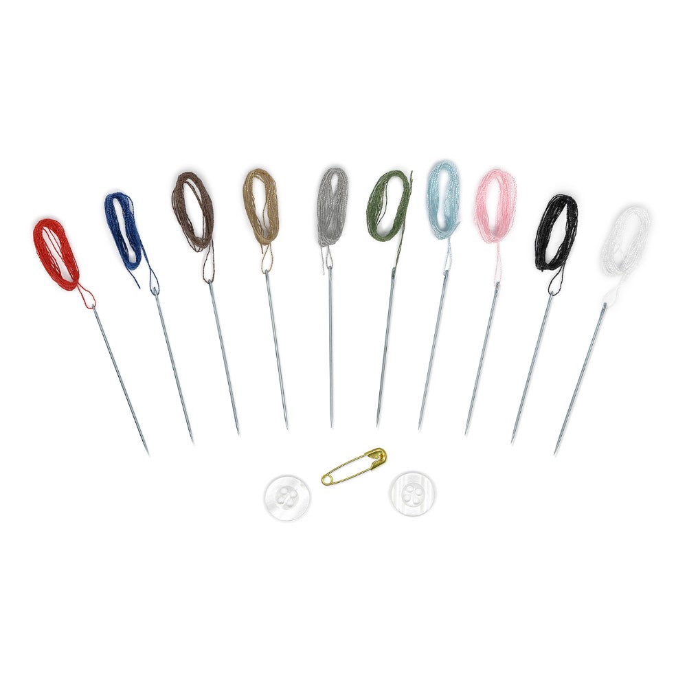 The Dritz Pre-Threaded Needle Kit is perfect for quick repairs and emergency fixes. It contains 2 buttons, 1 Safety Pin and 10 pre-threaded hand needles with white, black, red, pink, brown, tan, roya…
