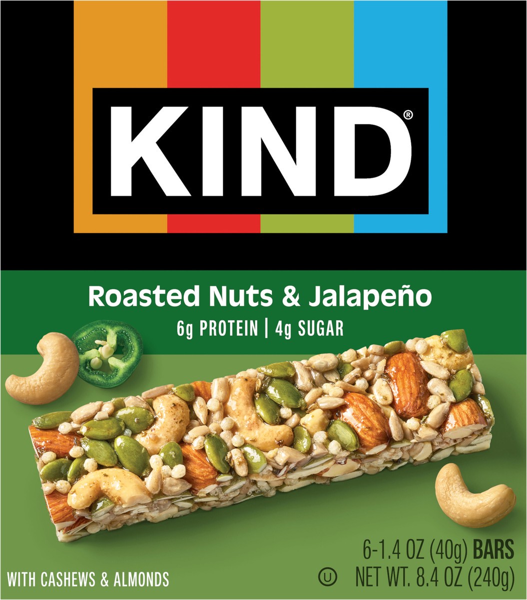 Discover our crave-worthy take on nut bars, ideal for heat lovers. KIND Savory Roasted Nuts & Jalapeno bars treat your taste buds to a unique mix of nuts, including #1 ingredient cashews, along with s…
