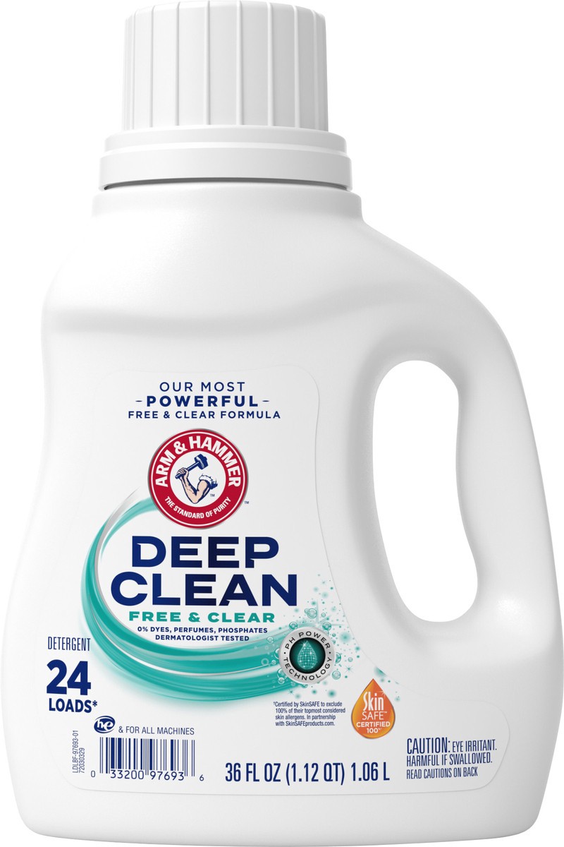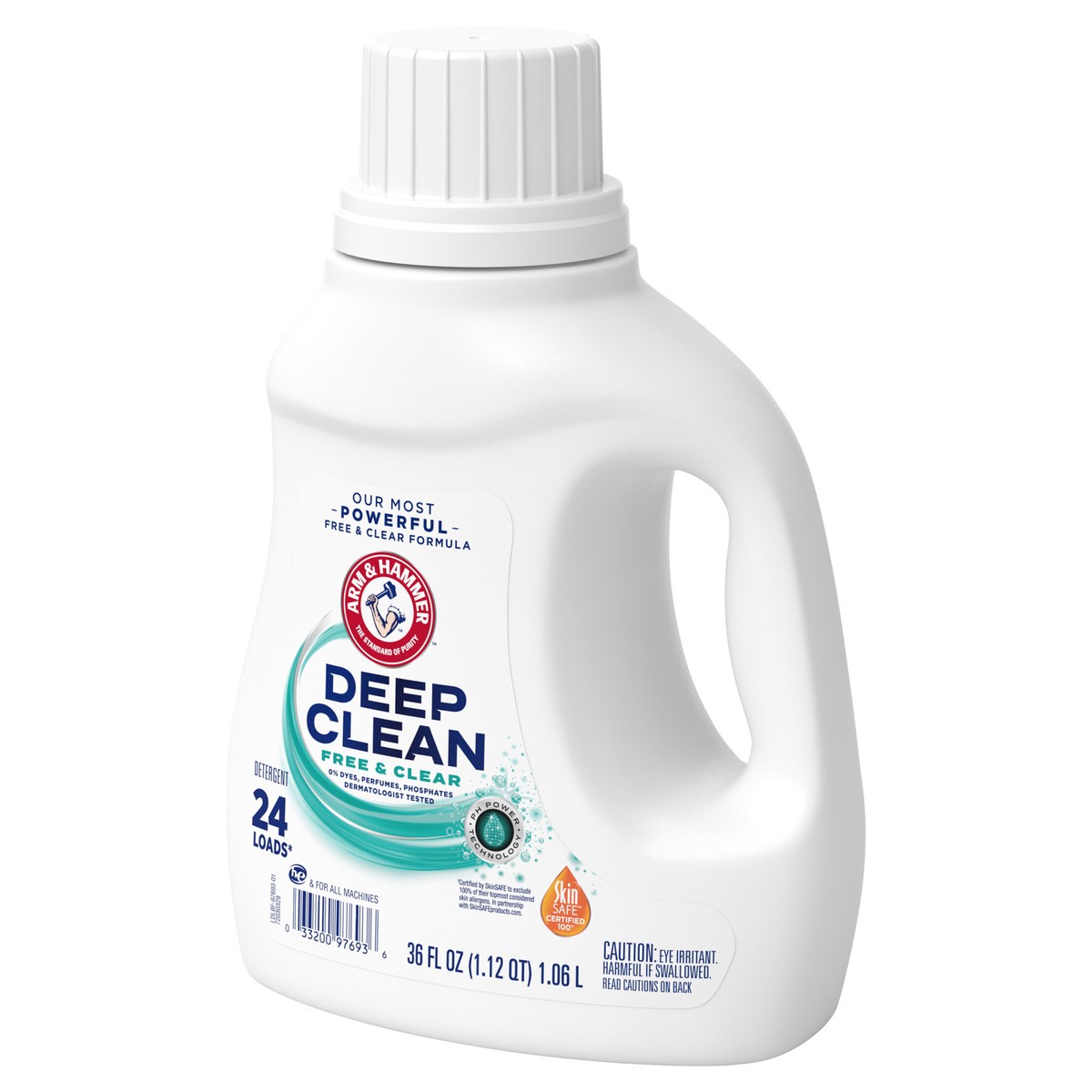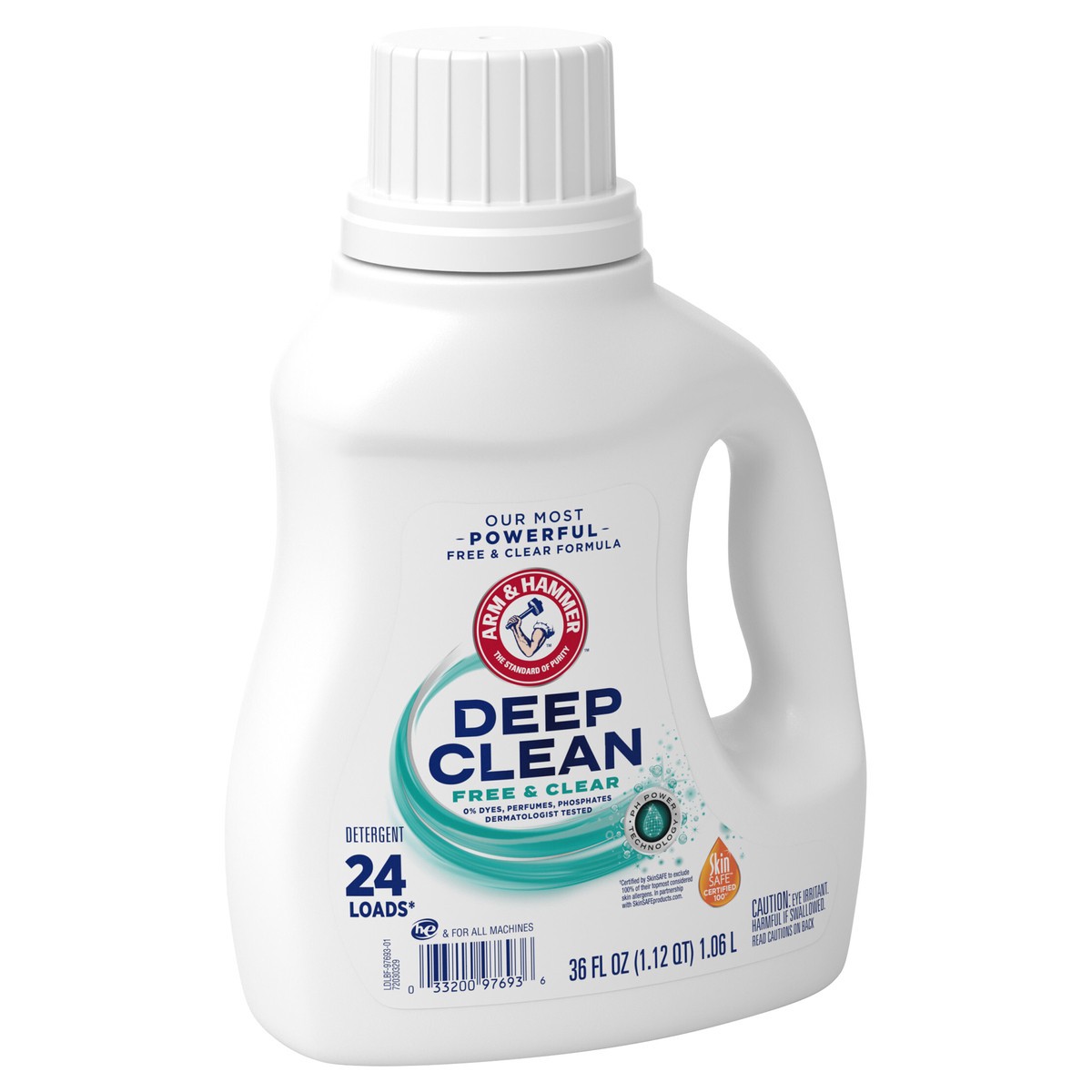 Get a deep cleaning detergent that is tough on stains and odors, and free of dyes and perfumes, with ARM & HAMMER Deep Clean Free & Clear Liquid Laundry Detergent. This powerful laundry detergent has …