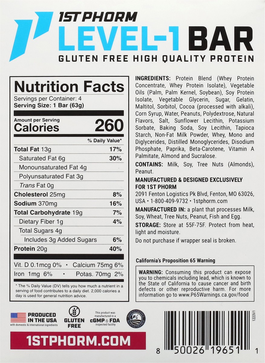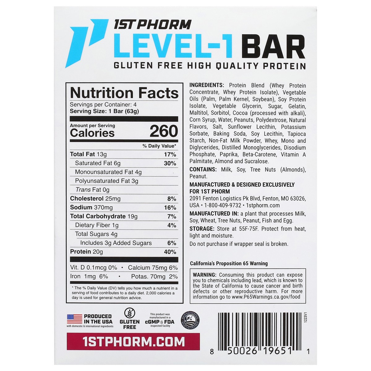 1st Phorm Level-1 Salted Caramel Protein Bars - 4 - 2.22 oz Bars