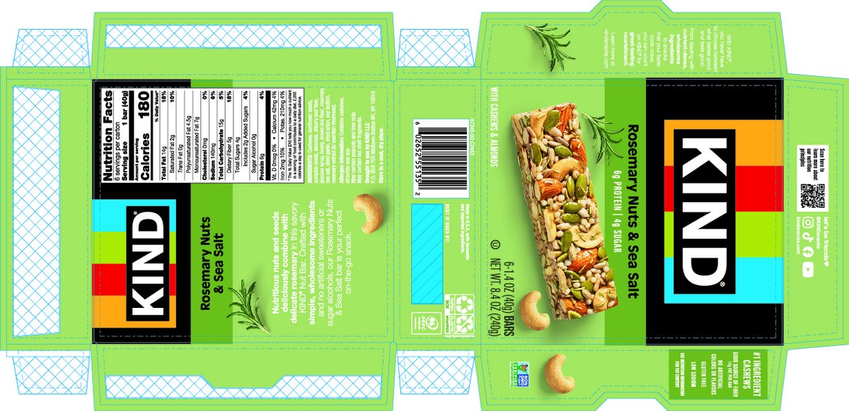 Discover our crave-worthy take on nut bars, bursting with savory herbs and spices. KIND Savory Rosemary Nuts & Sea Salt bars treat your taste buds to a perfectly seasoned mix of nuts, including #1 ing…