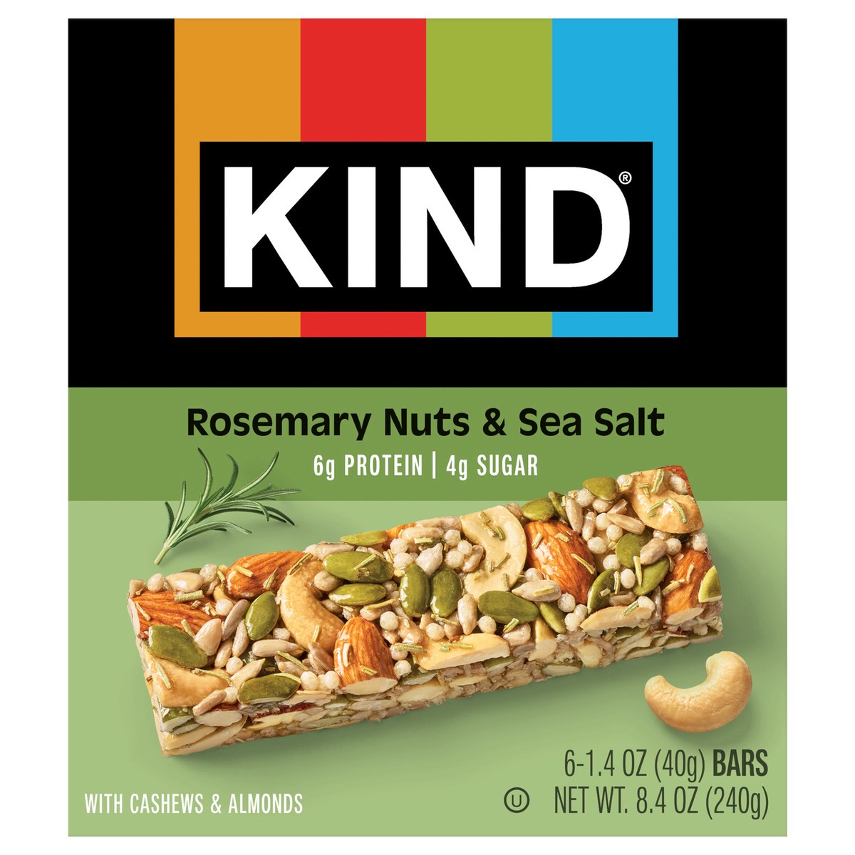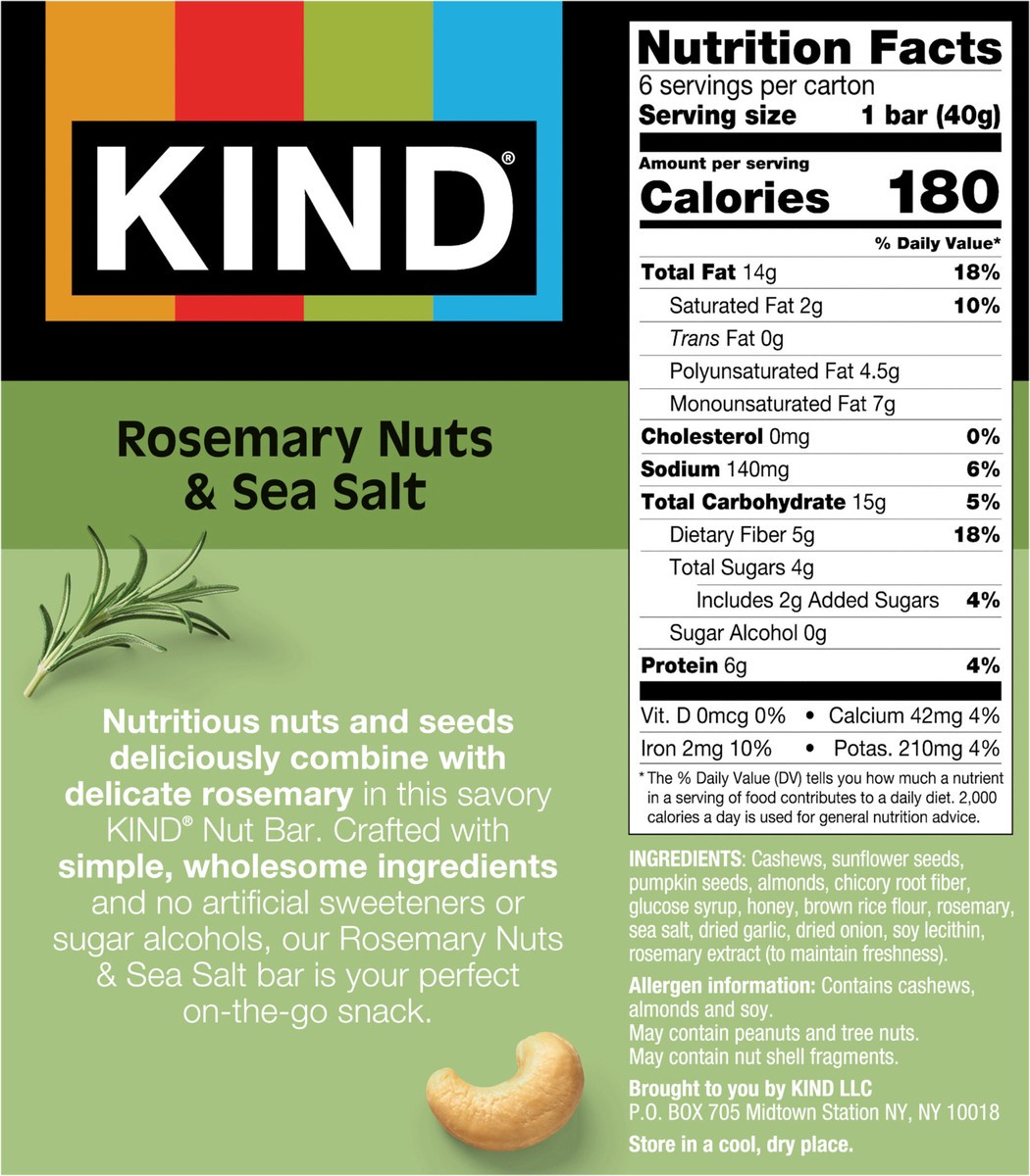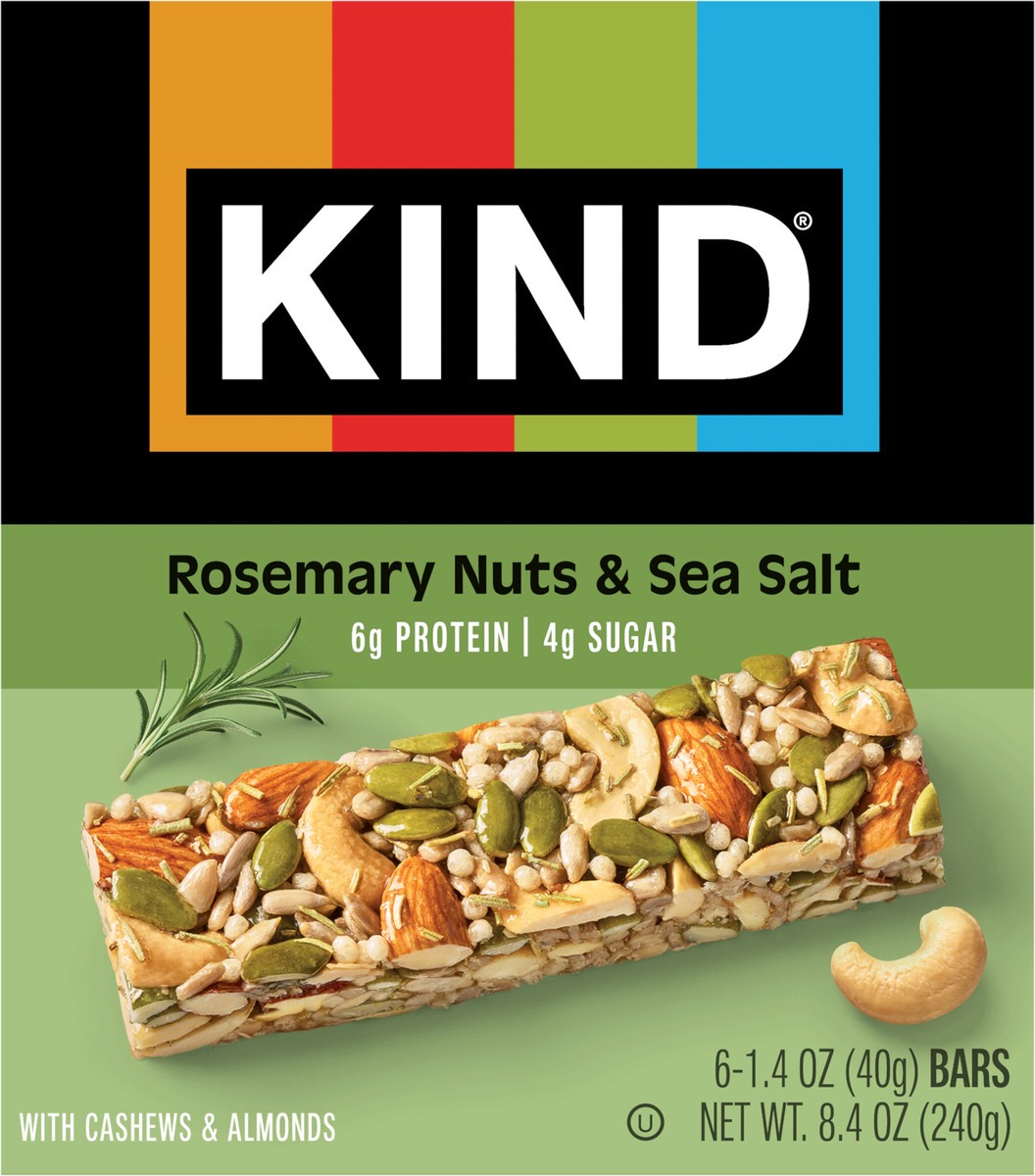 KIND Savory Nut Bars, Gluten Free Snacks, Rosemary Nuts & Sea Salt, 8.4oz Box (6 Bars)
