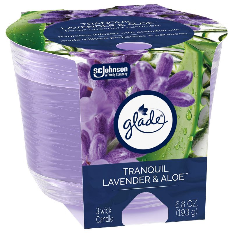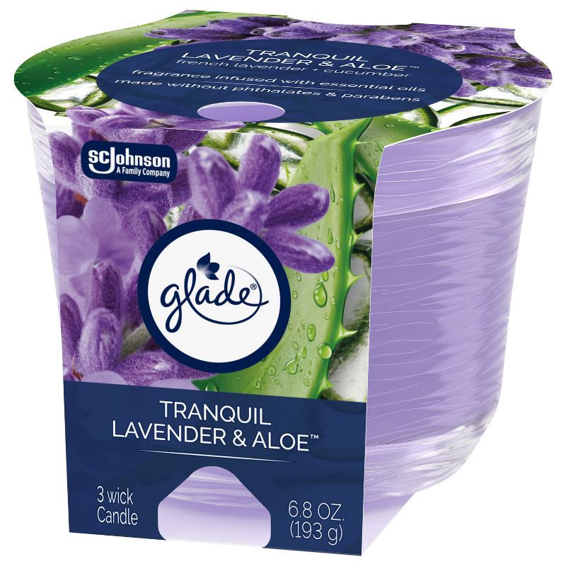 Glade 3 Wick Glass Jar Candles - Tranquil Lavender & Aloe - 6.8oz: 30 Hour Burn Time