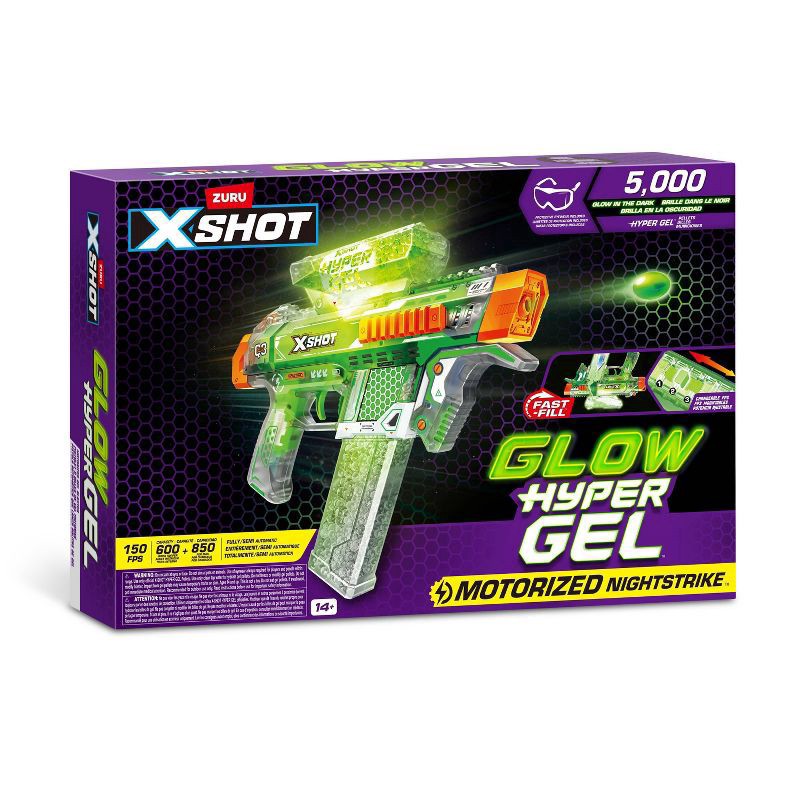 It's time to get hyped up with XSHOT Hyper Gel Glow in the Dark! XSHOT Hyper Gel Glow In The Dark NightStrike can blast Hyper Gel Pellets at 170 feet per second with its motorized fully and semi autom…