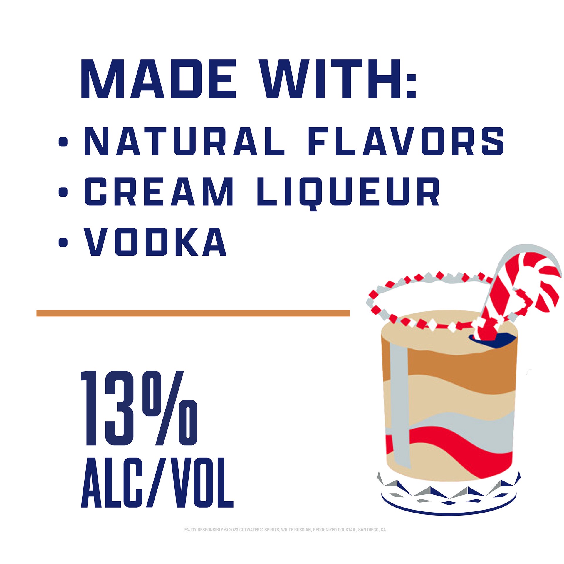 Cutwater Peppermint White Russian 4 Pack 12 fl oz Cans. Cutwater, real spirits, perfectly mixed. Featuring our award-winning Cutwater vodka, coffee cream liqueur and peppermint flavor. Enjoy with a pe…