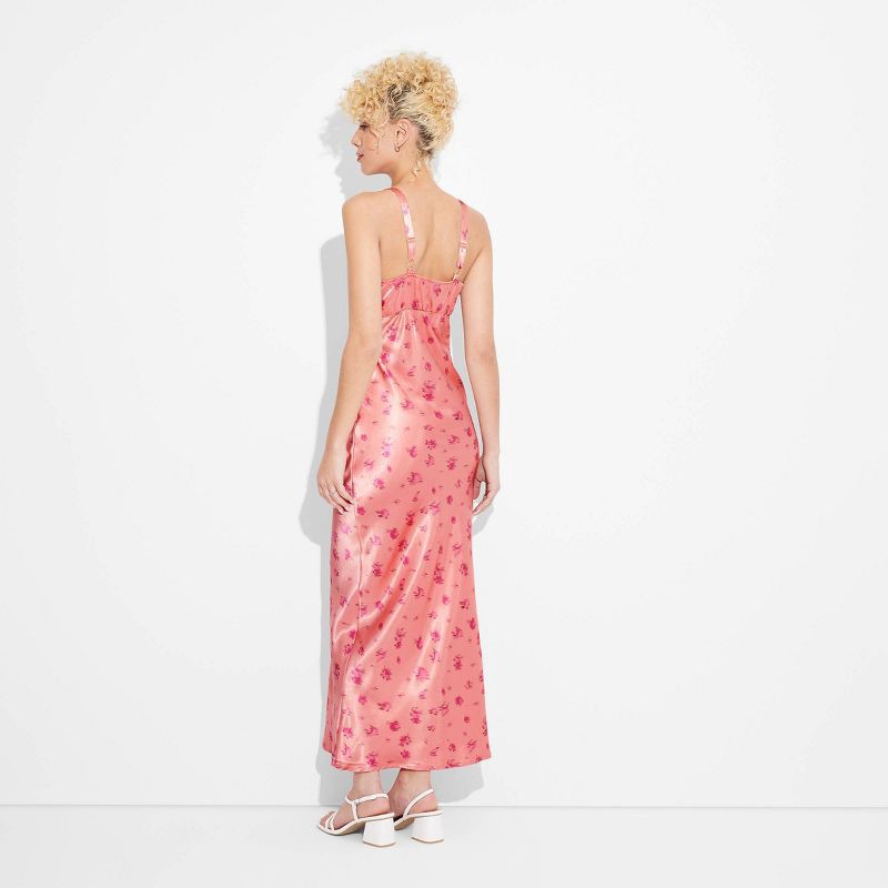 Women's Satin Lace Trim Midi Slip Dress - Wild Fable™ Salmon Pink Floral L