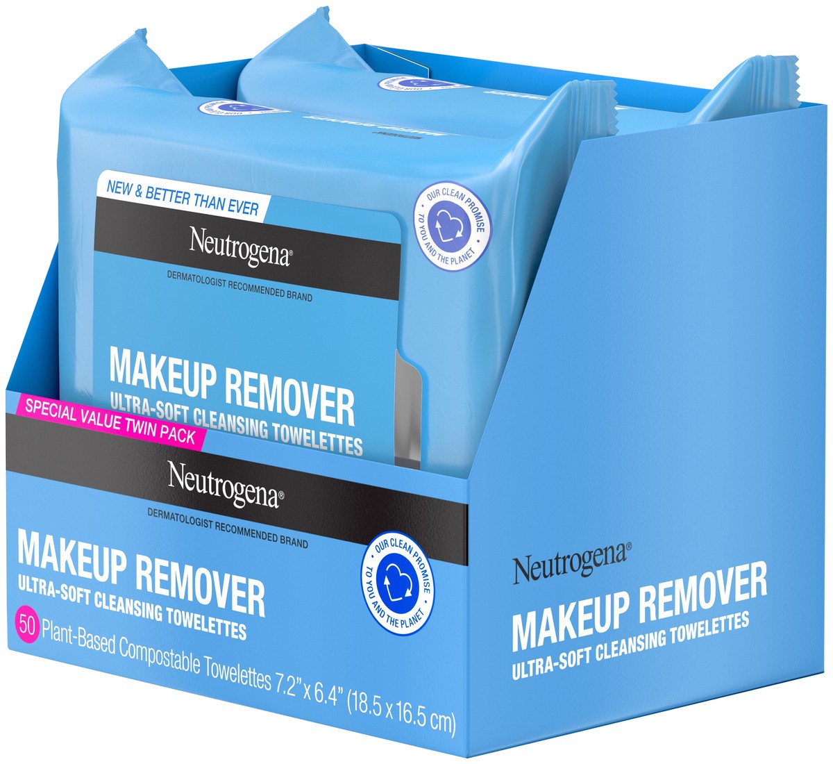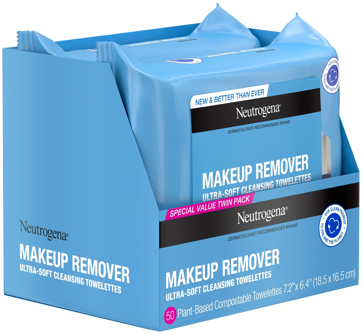 - Pre-moistened Neutrogena Makeup Remover Wipes to gently cleanse skin & remove makeupRemove makeup & effectively cleanse skin in one easy step with these facial cleansing towelettesHome-compostable face wipes remove dirt