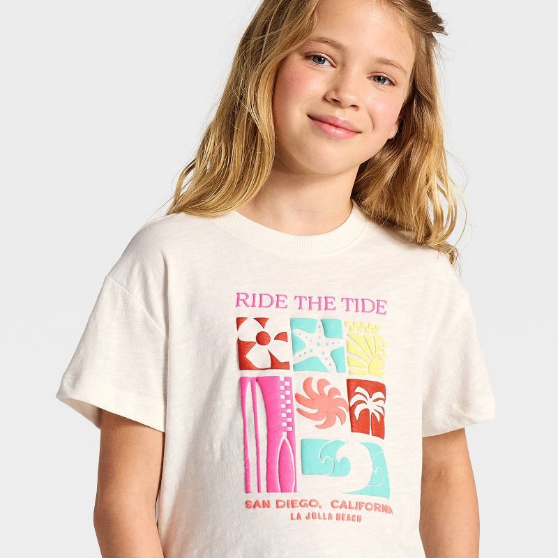 Girls' Short Sleeve Relaxed Fit 'Ride The Tide' Graphic T-Shirt - Cat & Jack™ Cream L