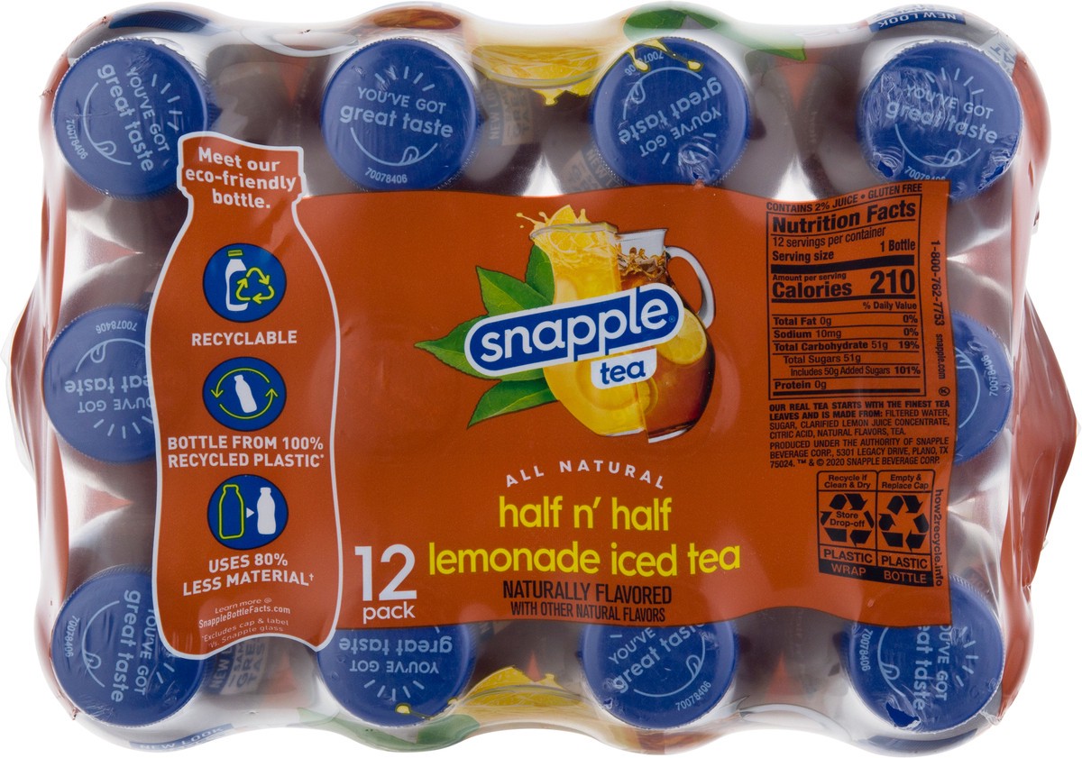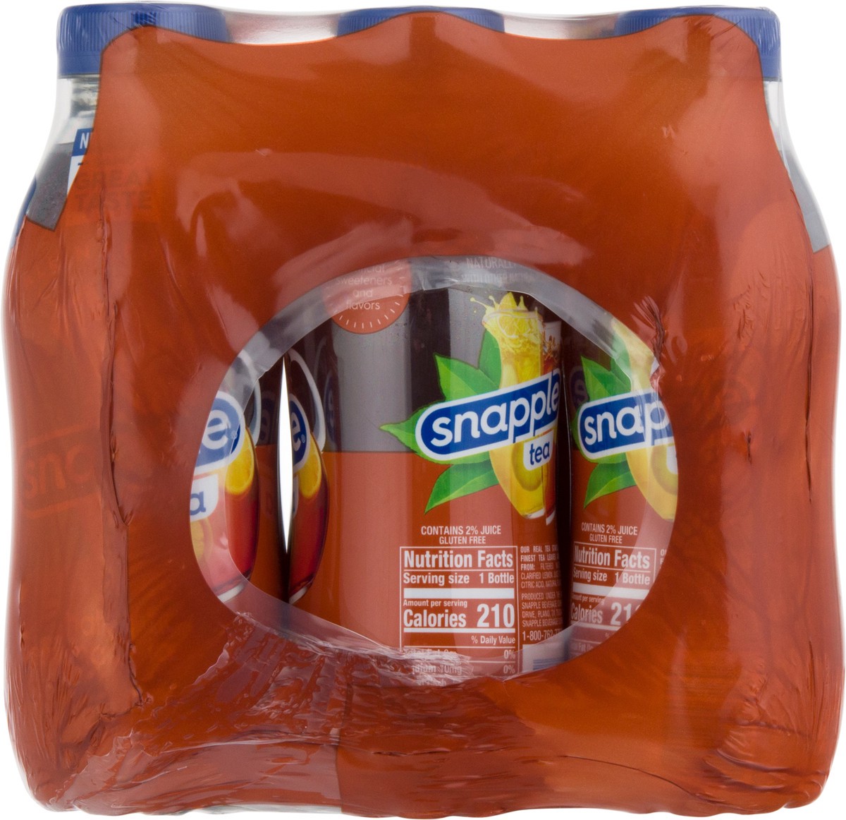 Naturally flavored with other natural flavors. 210 calories per bottle. Gluten free. New look same great taste. All natural. You've got great taste. snapple.com. how2recycle.info. Learn more (at)Snapp…