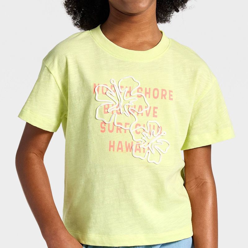 Girls' Short Sleeve Relaxed Fit 'Hibiscus' Graphic T-Shirt - Cat & Jack™ Neon Yellow XL