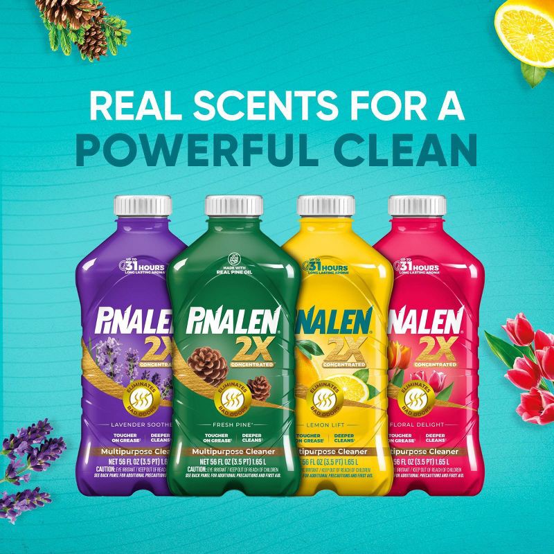 - Powerful 2X formula delivers the same cleaning performance with just half the amount of non-concentrated liquid* (*half a dose is needed vs. PINALEN® Fresh Pine® formula)