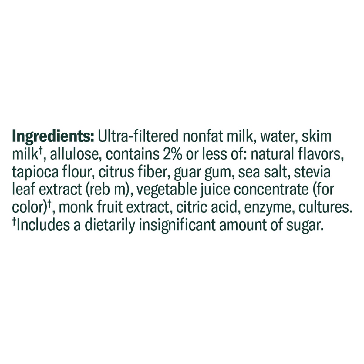 Ultra-Filtered Nonfat Milk, Water, Skim Milk (Includes a Dietarily Insignificant Amount of Sugar), Allulose, Contains 2% or Less of: Natural Flavors, Tapioca Flour, Citrus Fiber, Guar Gum, Sea Salt, S…