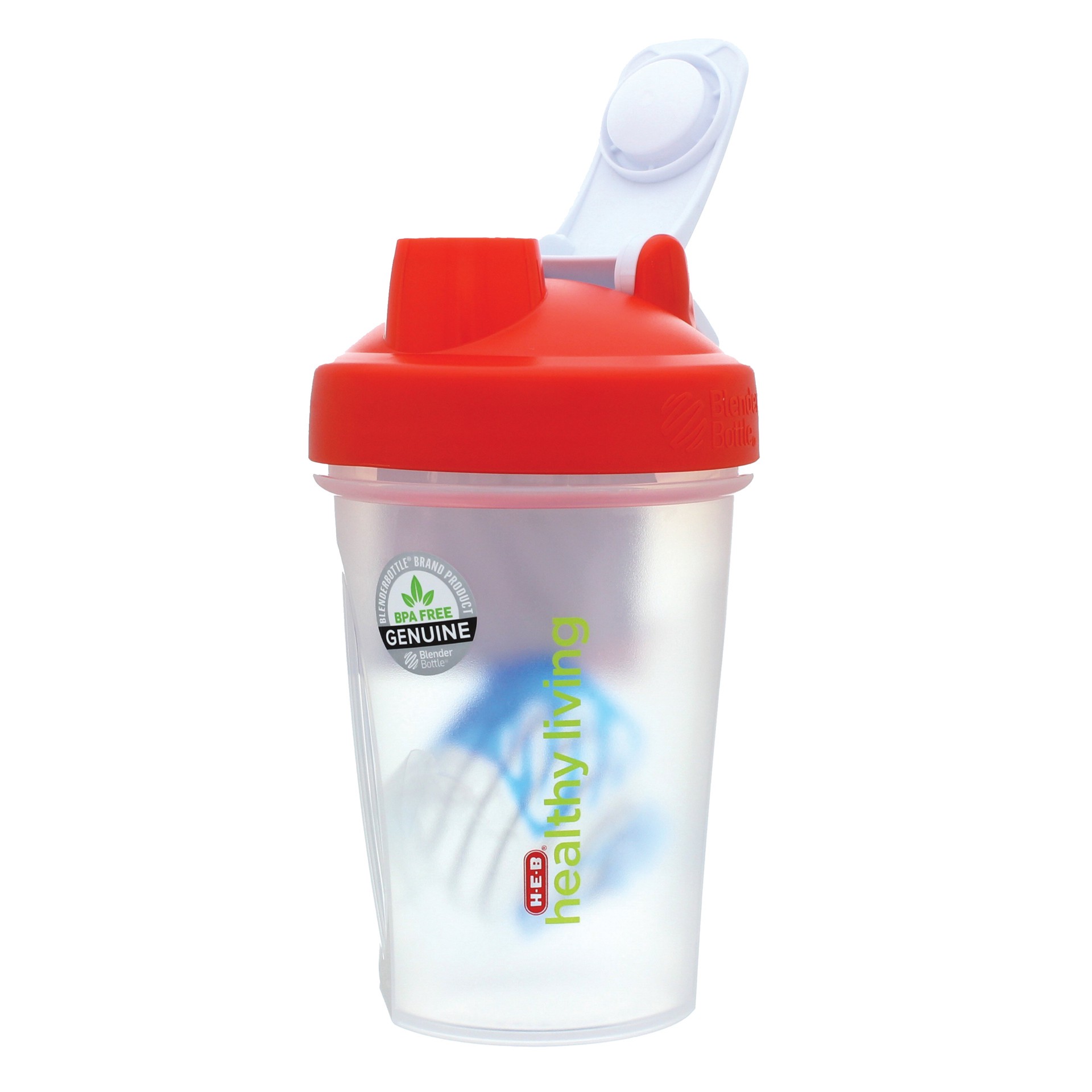 Make a protein shake on the go with this H-E-B Healthy Living blender bottle. It has a whisking blender ball on the inside that mixes up protein powder and water as you shake the 20-oz cup. Designed w…