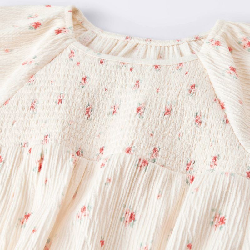 Dress them in adorable comfort in the Crinkle Knit Floral Bubble Sleeve Romper from Cloud Island™. Designed in a sweet allover floral print, this bubble-sleeve romper features a crinkle knit fabric wi…