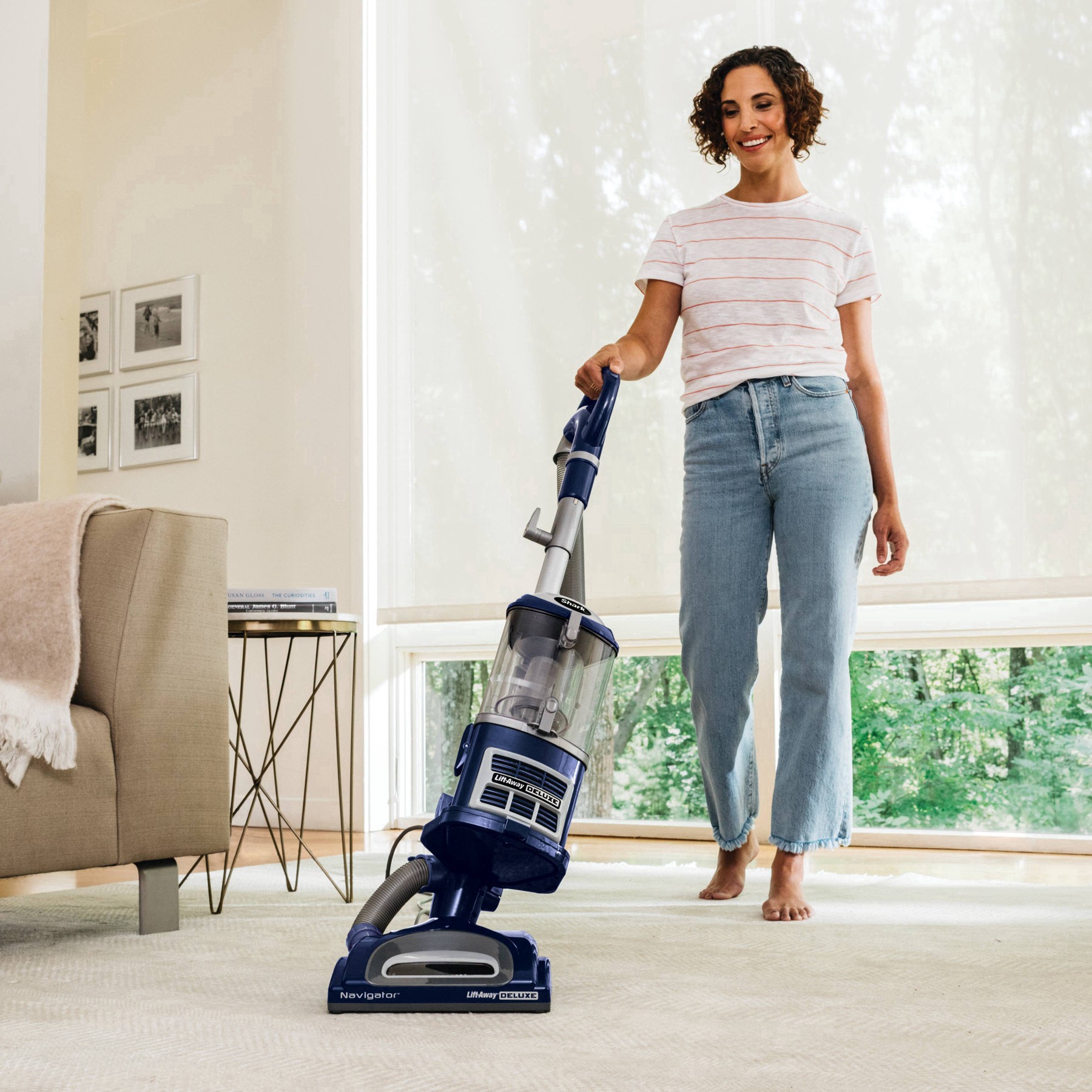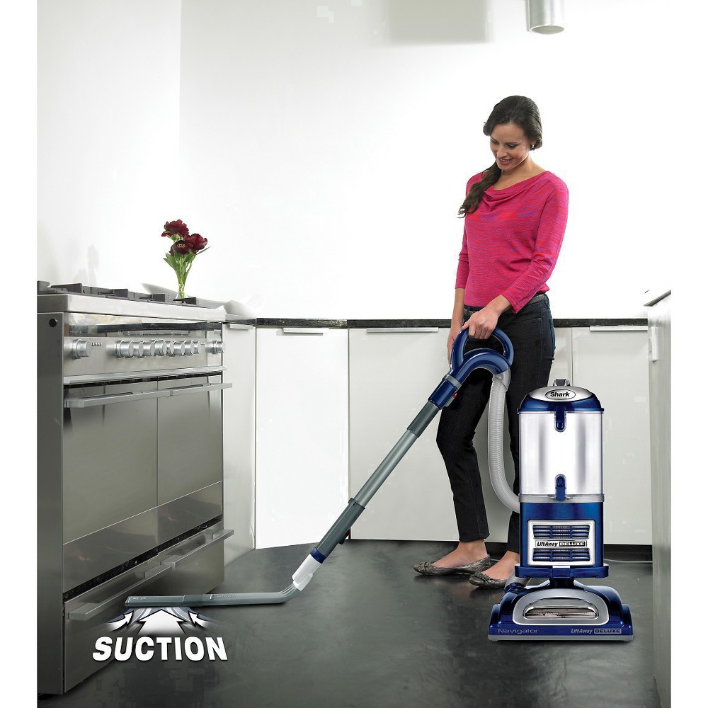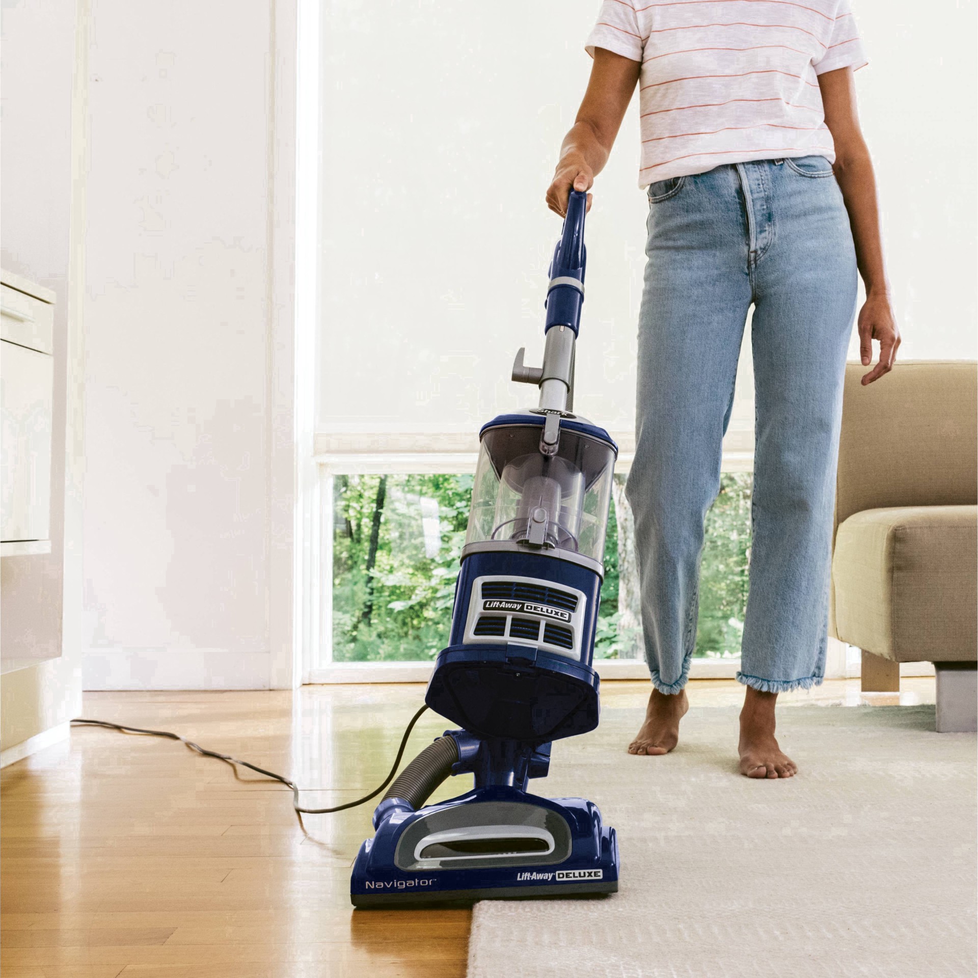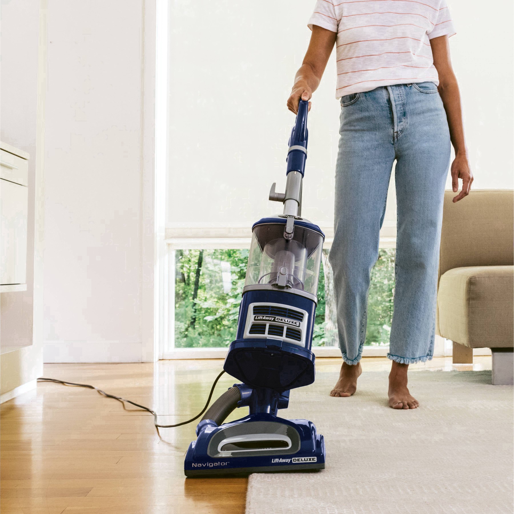 Keep your space spick and span with the Shark Navigator Lift-Away® Deluxe Upright Vacuum. This lift-away upright vacuum comes with a detachable pod. With just the push of a button, detach the pod to c…