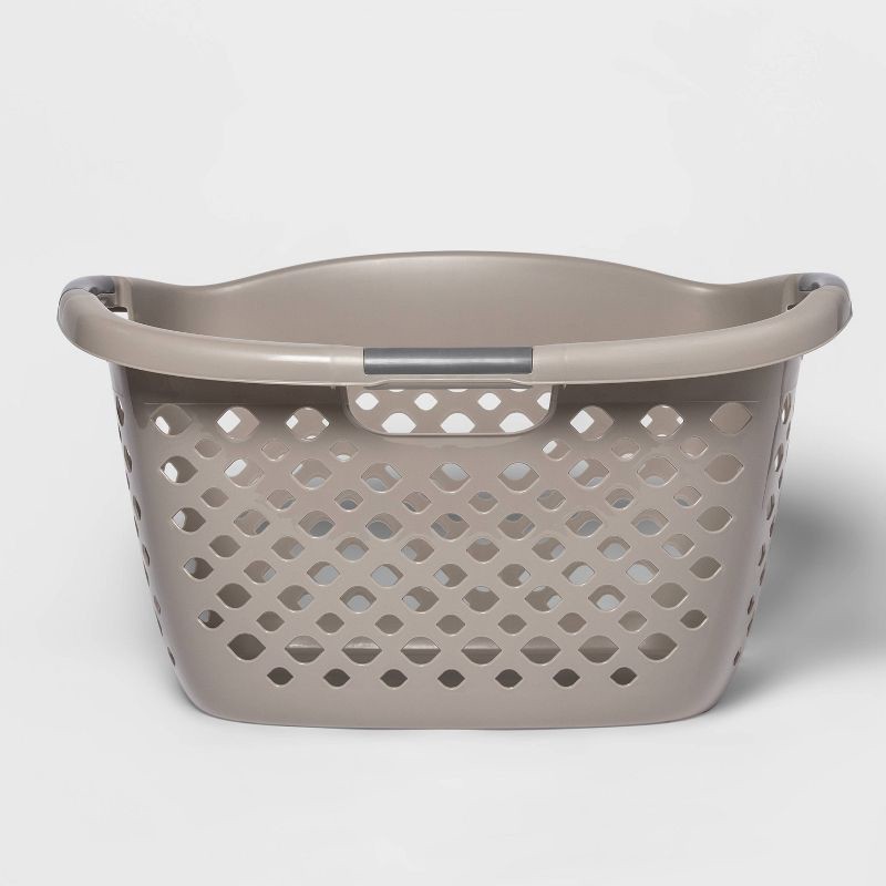 Easily carry heavy laundry loads with this laundry basket from Room Essentials. This laundry basket rests comfortably on your hip for convenient, one handed carrying. The three handles are easy grip t…