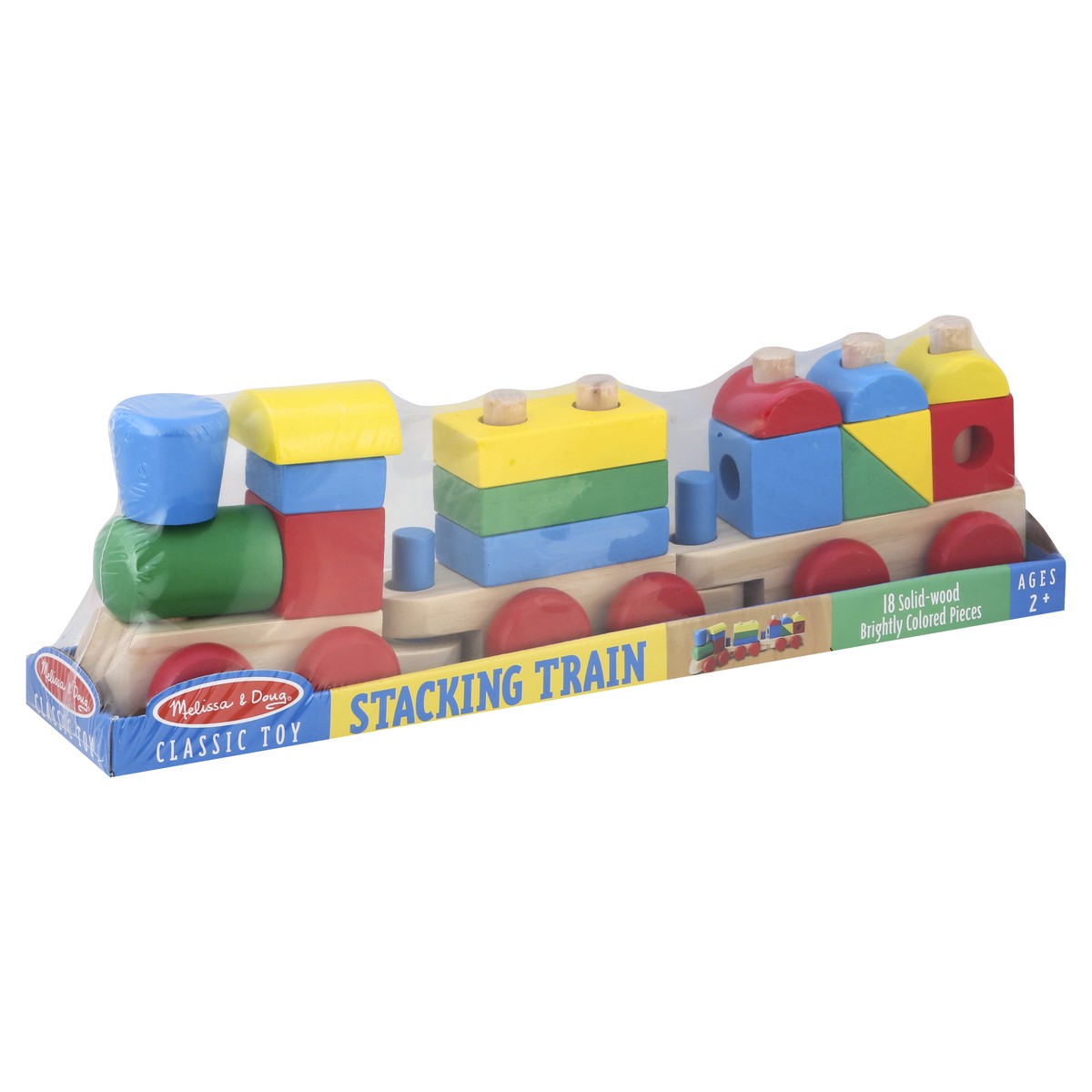 18 solid-wood brightly colored pieces. Ages 2+. Stacking train helps teach basic color recognition, sorting, fine motor skills and problem solving; encourages imaginative play and beginning counting s…